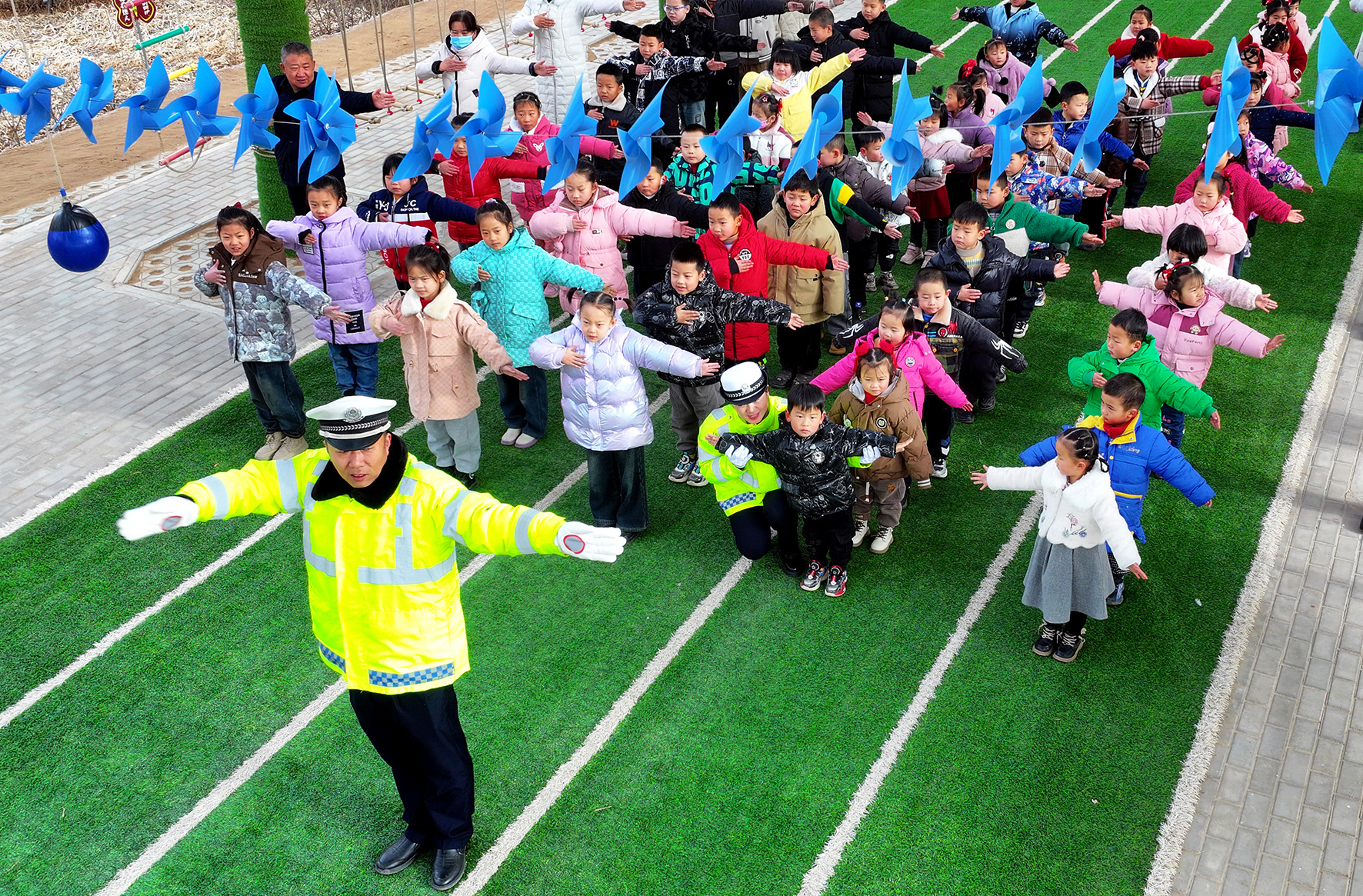 2月26日,山東省煙臺(tái)市公安局交警支隊(duì)第五大隊(duì)民警在為高新區(qū)益文小學(xué)的同學(xué)們上“開(kāi)學(xué)第一課”,普及交通安全知識(shí)。