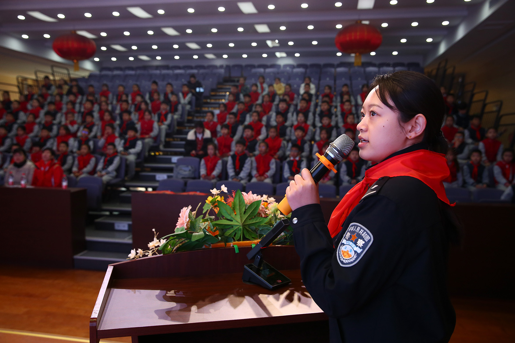 2月26日,山東省濟(jì)南市公安局市中區(qū)分局大觀園派出所民警來(lái)到經(jīng)五路小學(xué),給學(xué)生們上安全課。