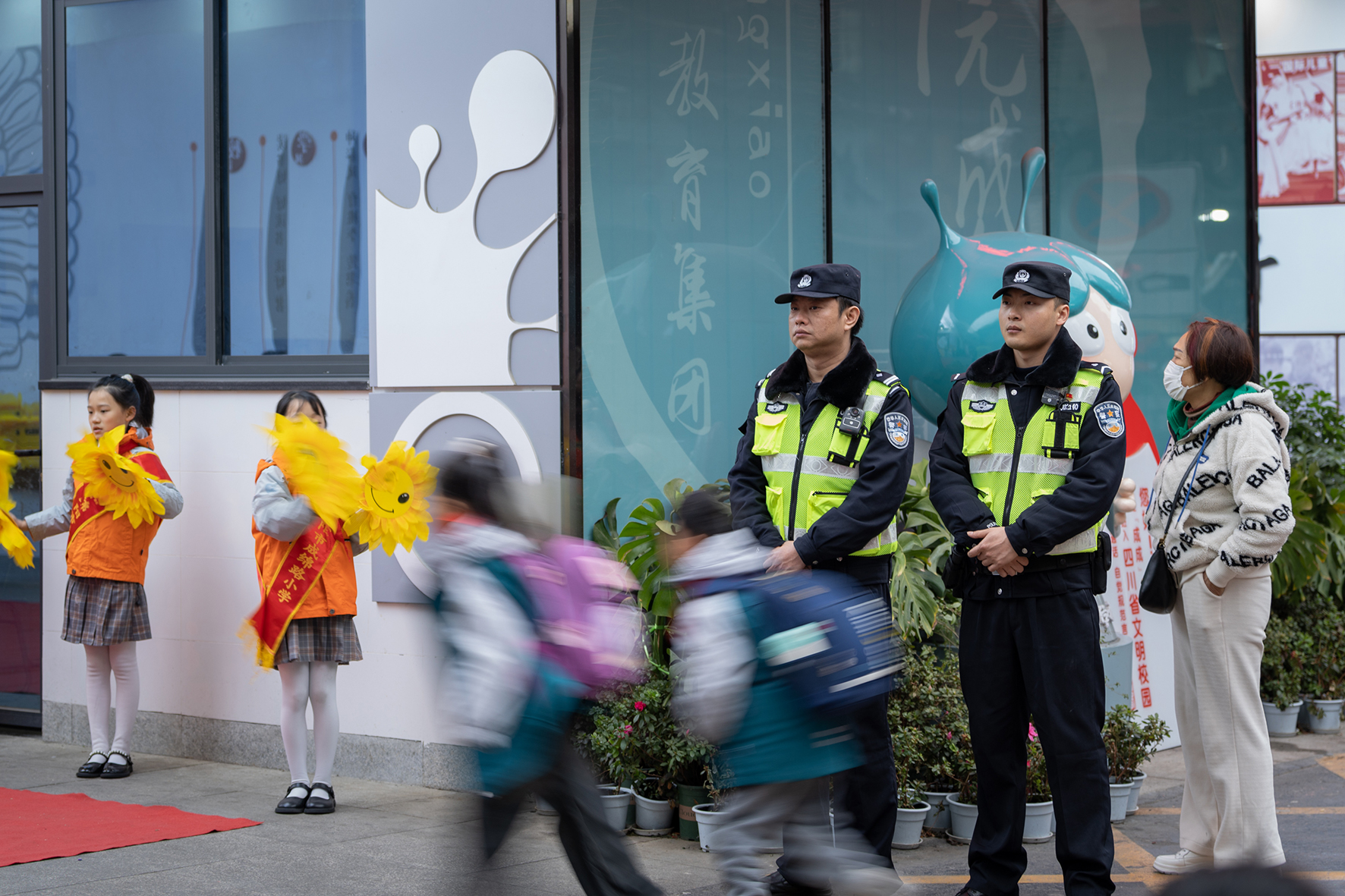 2月26日,四川省綿陽(yáng)市公安局特巡警支隊(duì)民輔警,在涪城區(qū)成綿路小學(xué)站好護(hù)學(xué)“第一崗”。