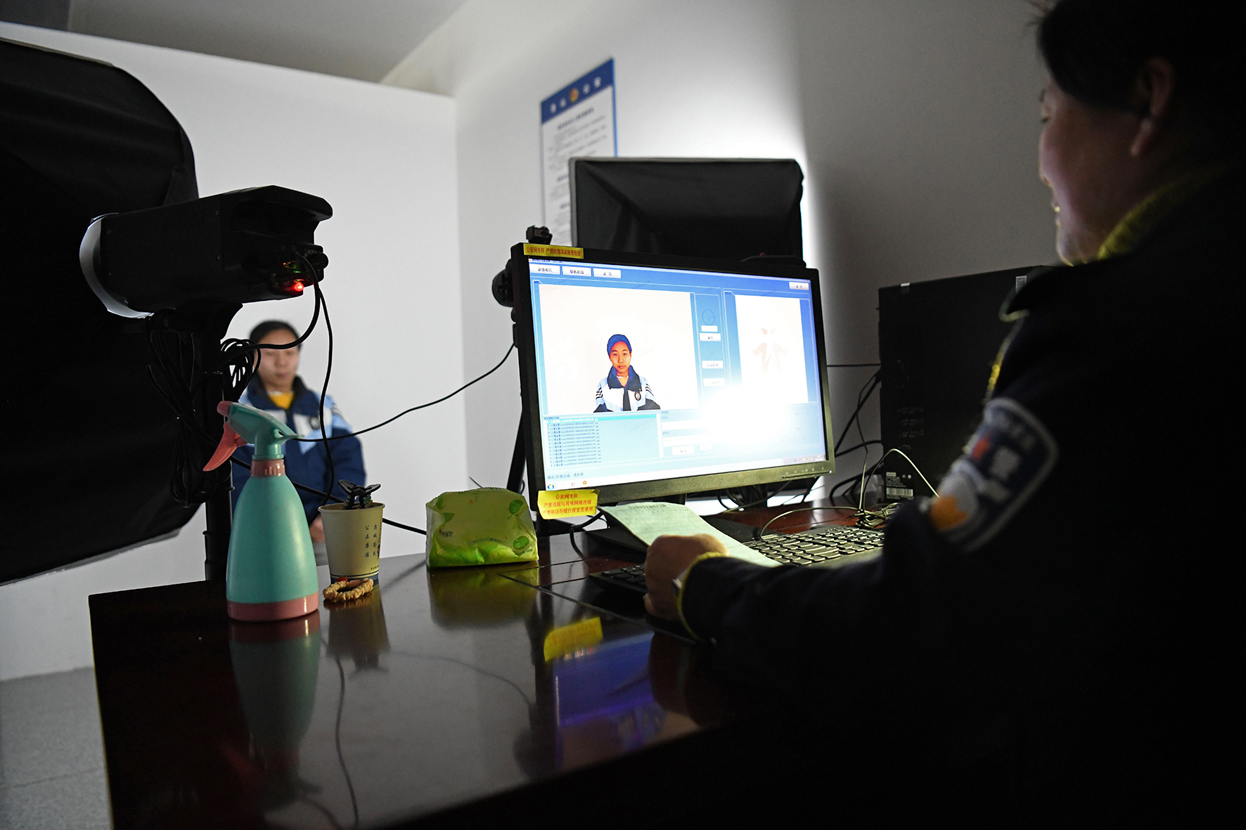 圖為民警正在為學(xué)生辦理身份證件。