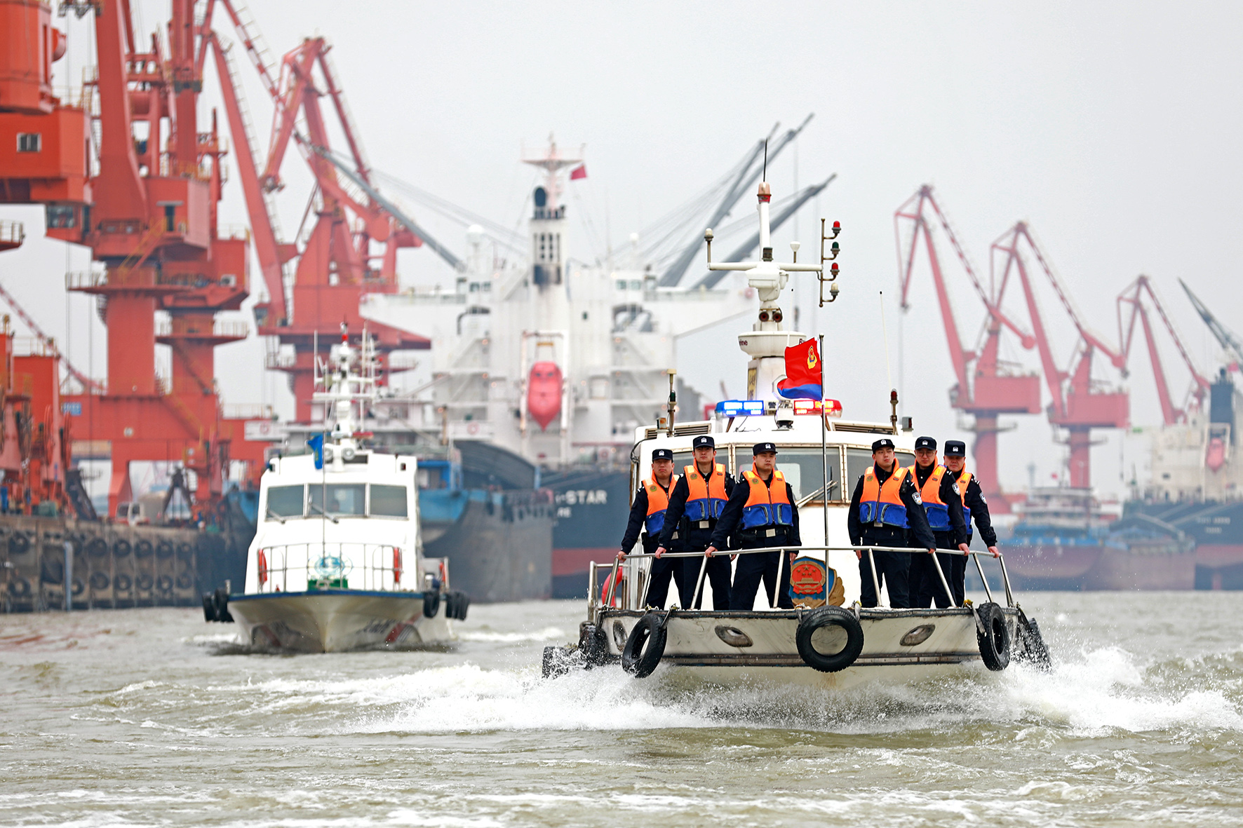 3月6日,江蘇出入境邊防檢查總站鎮(zhèn)江出入境邊防檢查站聯(lián)合長(zhǎng)江航運(yùn)公安局鎮(zhèn)江分局、鎮(zhèn)江海事局開展聯(lián)合巡查,全力服務(wù)保障碼頭安全生產(chǎn)、船舶轉(zhuǎn)運(yùn)通暢,并及時(shí)為船民提供高效服務(wù)。