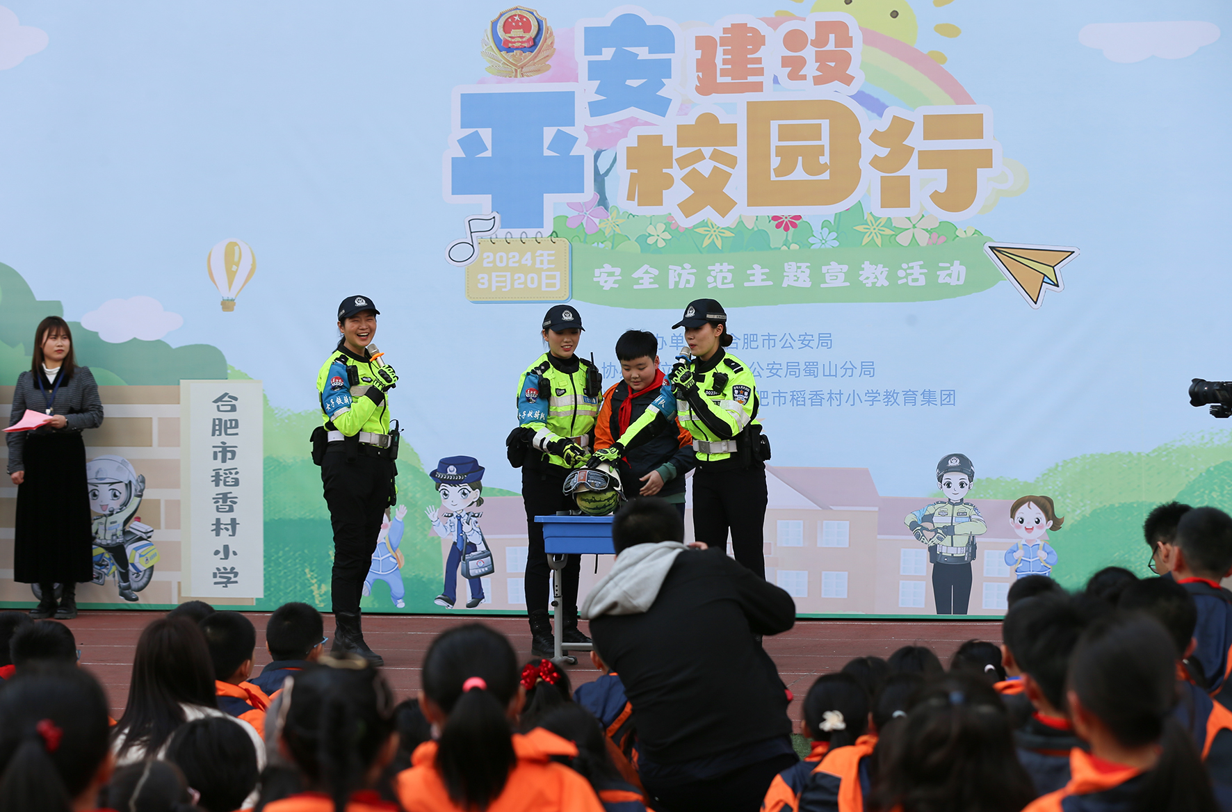 3月20日,第29個(gè)“全國(guó)中小學(xué)生安全教育日”來(lái)臨之際,安徽省合肥市 “平安建設(shè)校園行”主題宣傳活動(dòng)走進(jìn)市稻香村小學(xué)。刑警、交警、特警、禁毒、網(wǎng)絡(luò)安全等警種的民警們依次登場(chǎng),為近五千名孩子帶來(lái)了一堂生動(dòng)的安全防范教育課。