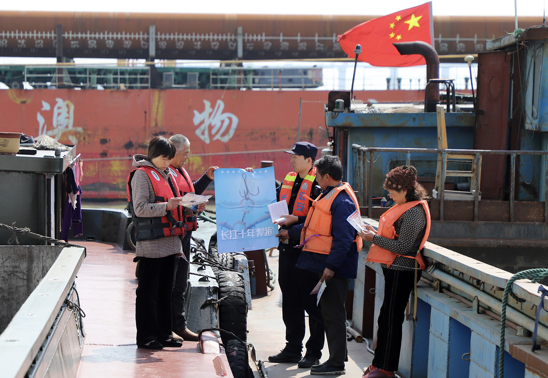 圖為民警來到長江刀鱭水產(chǎn)種質資源保護區(qū),向船員開展普法教育宣傳。