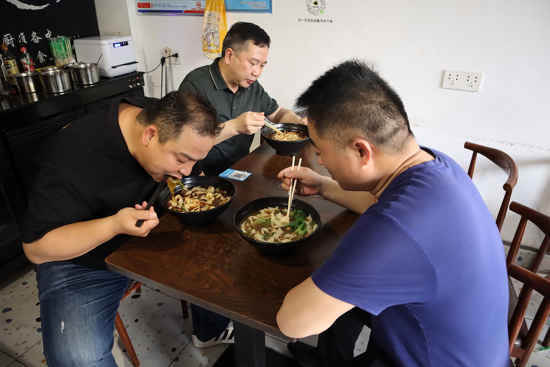 3月25日,市中區(qū)分局與廣西南寧警方辦案民警在蹲點守候期間輪流吃飯。