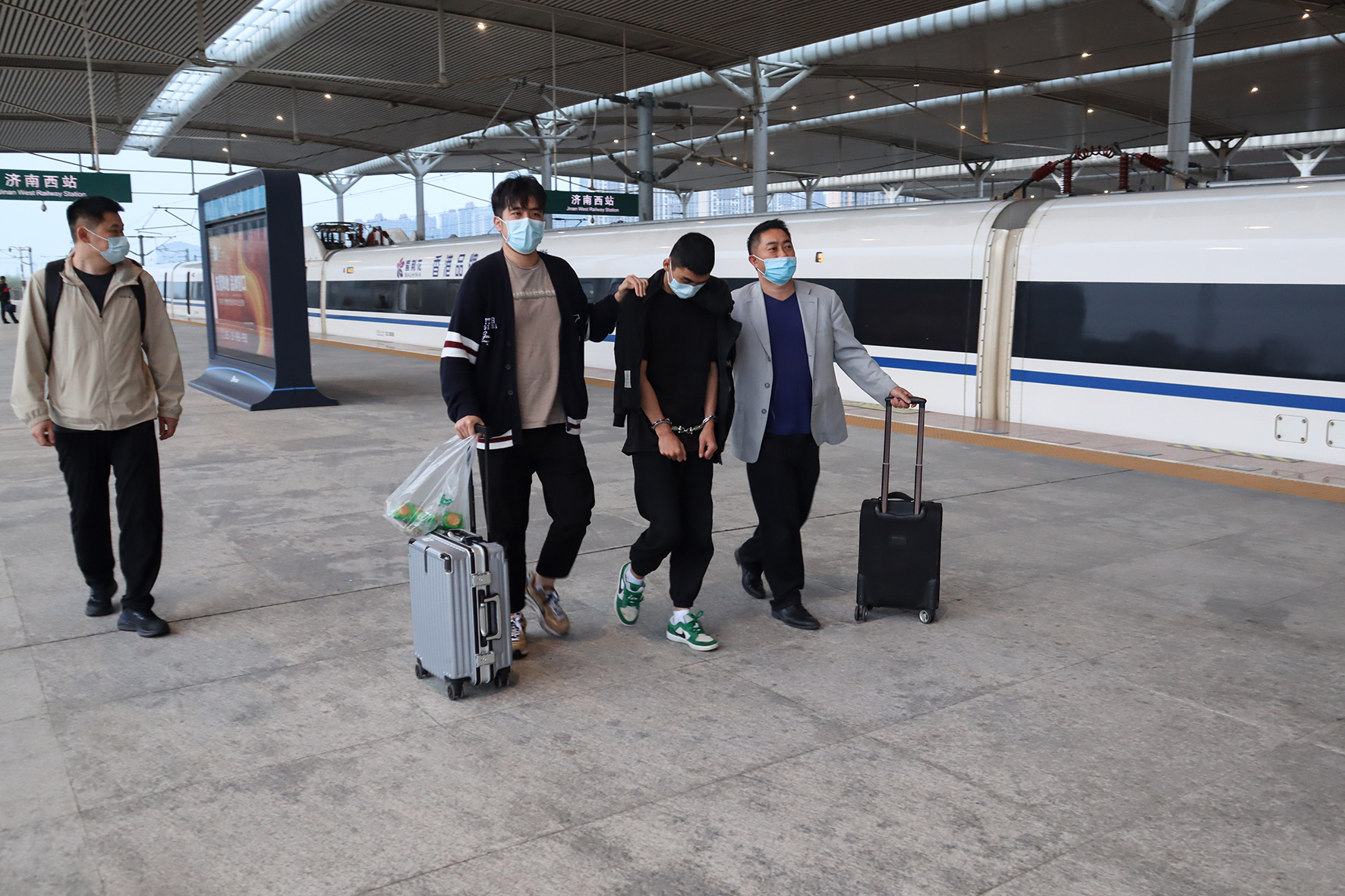 3月27日18時21分,從廣西南寧開往山東濟南的G436次高鐵緩緩駛進濟南西站,濟南市公安局市中區(qū)分局辦案民警將網(wǎng)上詐騙43000余元的犯罪嫌疑人張某押下車。自此,一場持續(xù)三天的抓捕行動圓滿結(jié)束。