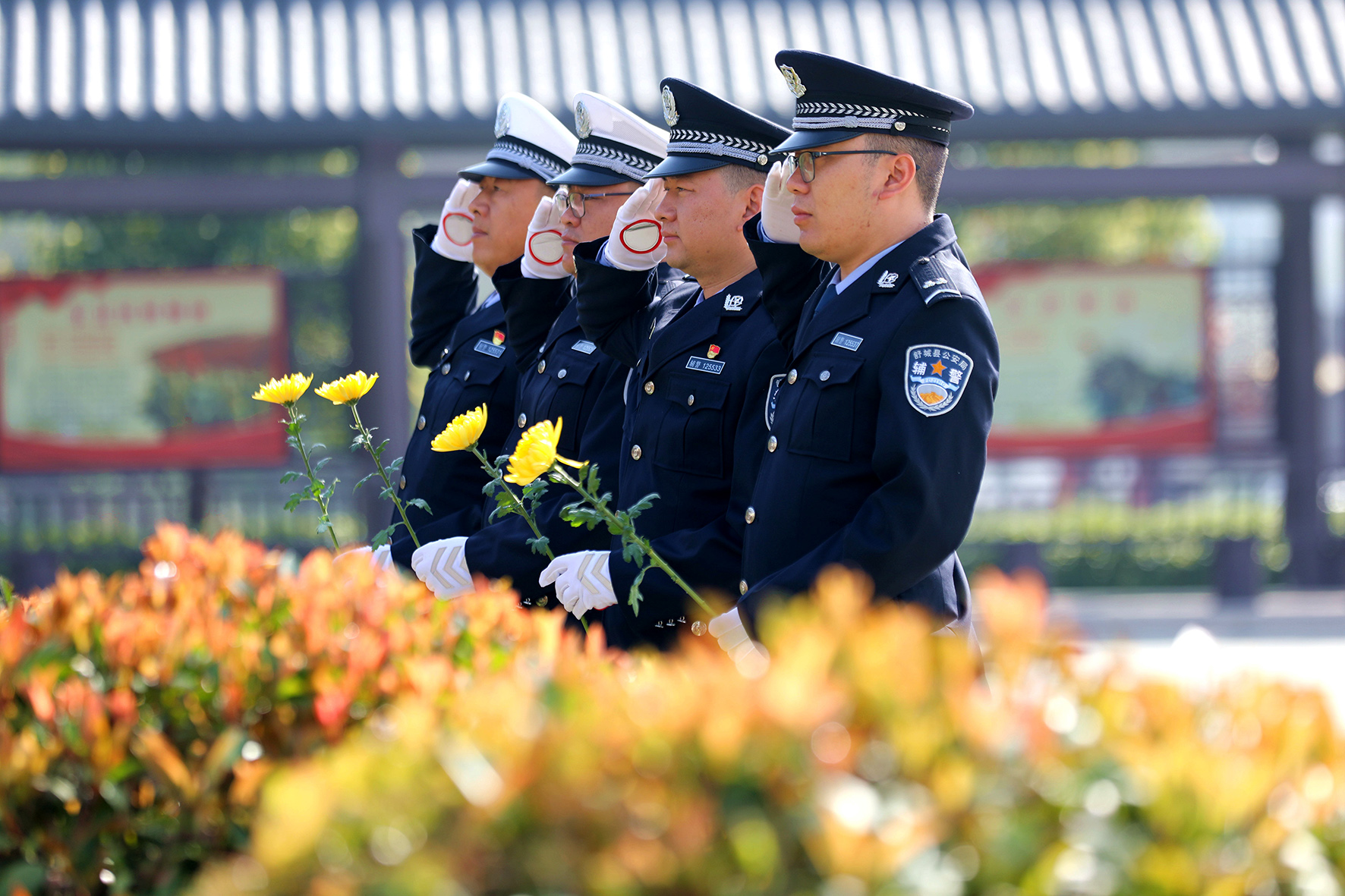 4月1日,山東省棗莊市公安局市中分局交通警察大隊民警輔警在天馬山烈士陵園舉行祭奠活動。