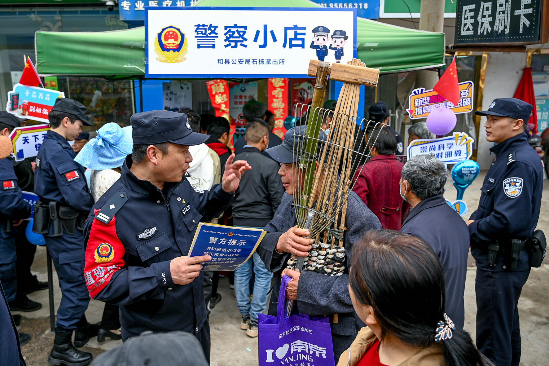 4月11日,農(nóng)歷三月初三,是安徽省馬鞍山市和縣石楊鎮(zhèn)綽廟社區(qū)一年一度群眾“趕廟會(huì)”的日子。和縣公安局在全力做好廟會(huì)安全服務(wù)保障的同時(shí),“警察小店”也“開張營(yíng)業(yè)”,禁毒、反詐、反邪教以及國(guó)家安全等各種法治宣傳吸引了許多趕廟會(huì)的群眾。