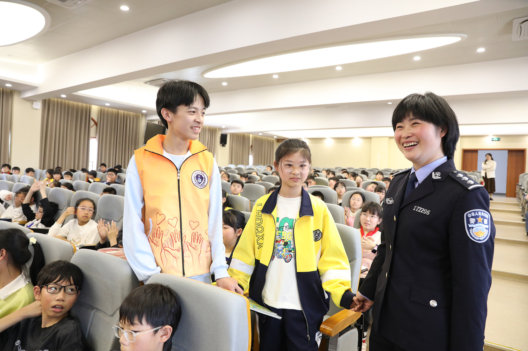 圖為民警、少年宣講團成員和學(xué)生一起互動。