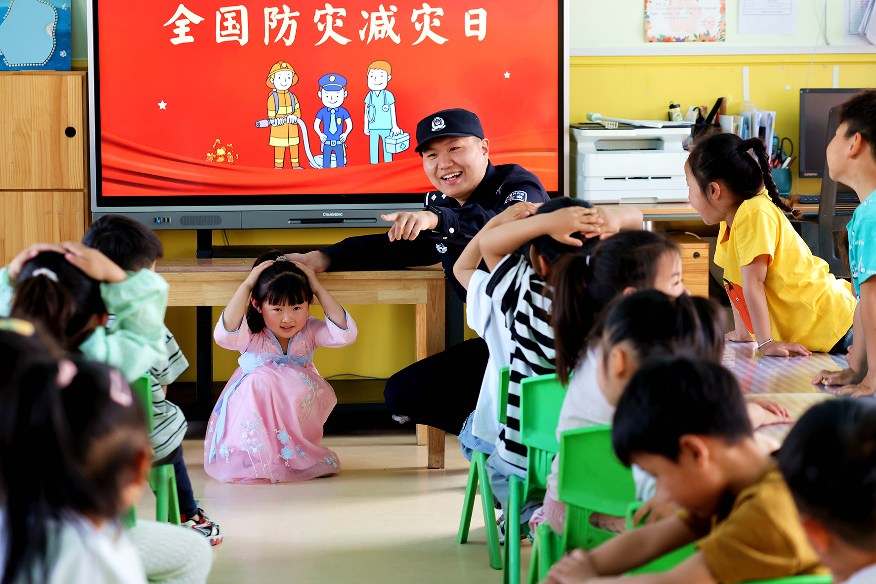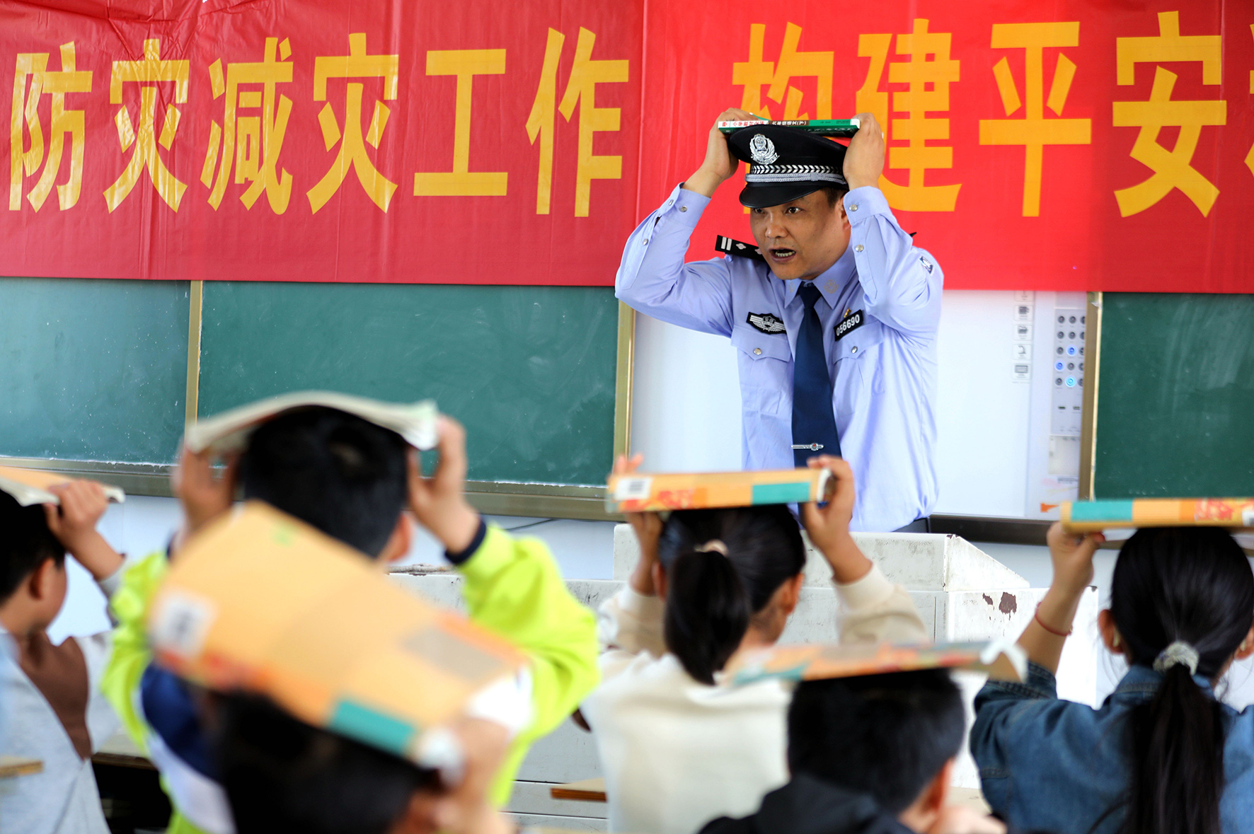 5月10日,安徽省馬鞍山市含山縣公安局組織民警走進(jìn)校園,開展防震減災(zāi)教育進(jìn)校園活動。
