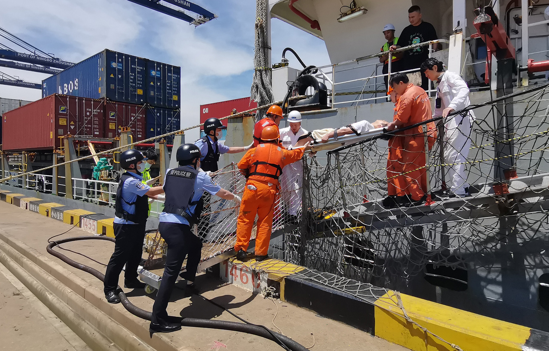 5月9日,浙江寧波出入境邊防檢查站綜合執(zhí)勤七隊(duì)開(kāi)通“綠色通道”緊急救助一名中國(guó)籍受傷船員。