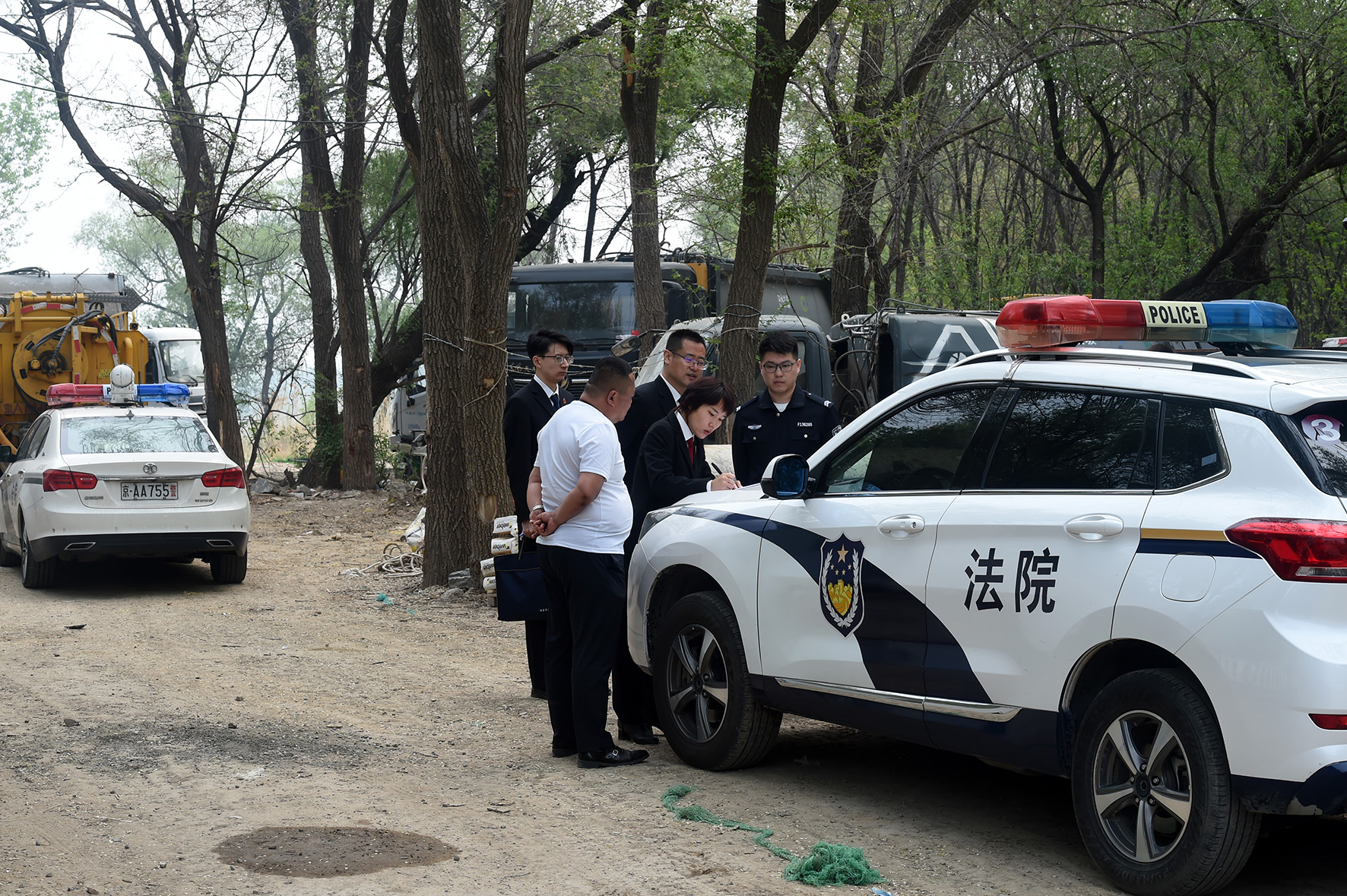 4月22日,北京市第三中級人民法院、河北省隆化縣人民法院的執(zhí)行法官與當(dāng)事人在北京市昌平區(qū)大湯山村一處停車場內(nèi),現(xiàn)場對三輛涉案扣押車輛辦理轉(zhuǎn)移交接手續(xù)。