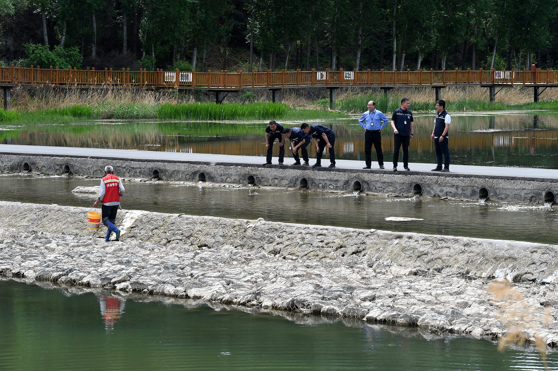 5月16日,北京市水務(wù)執(zhí)法總隊密云分隊與河北省承德市灤平縣水務(wù)局執(zhí)法人員在密云區(qū)古北口鎮(zhèn)河西村了解潮河兩岸垃圾治理情況。