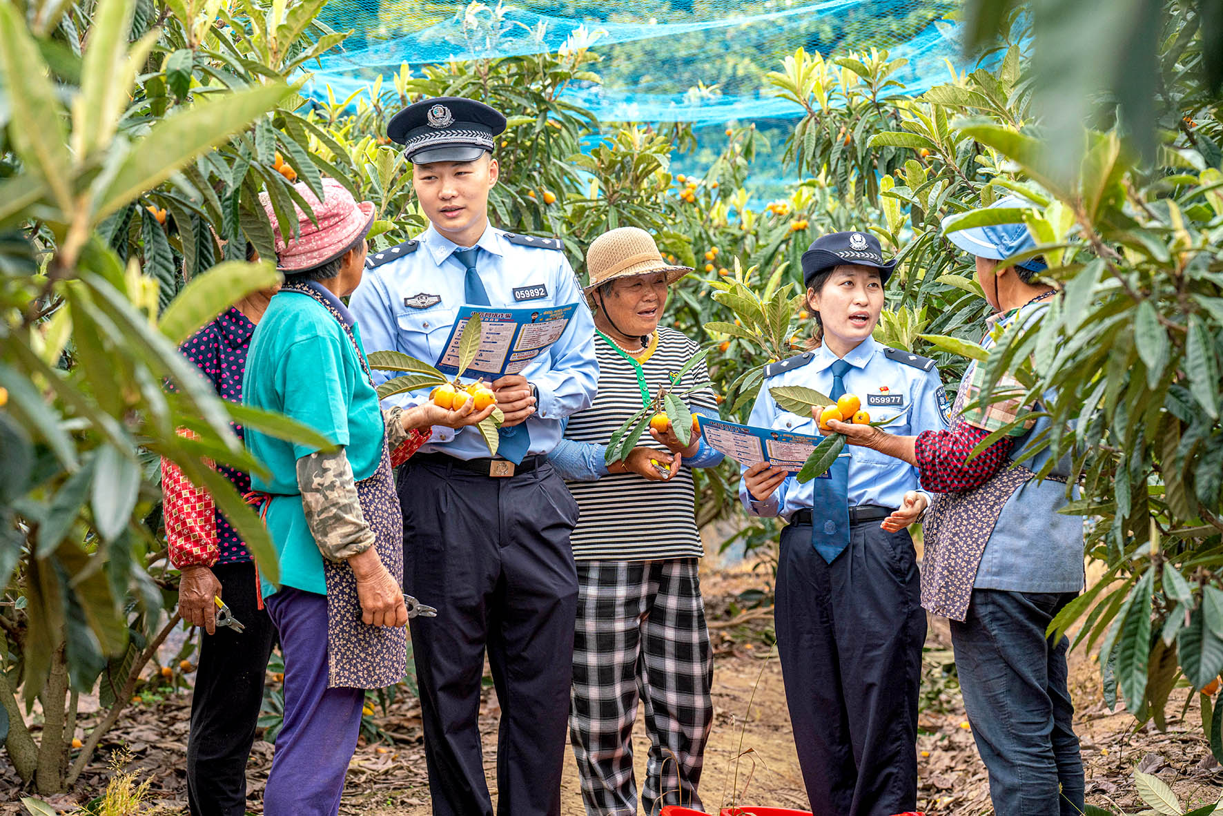圖為民警向果農(nóng)們開展電信詐騙防范宣傳。