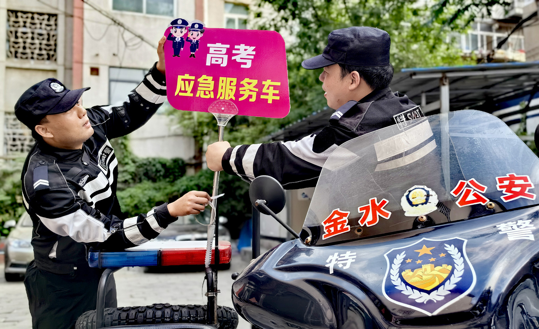 6月5日,河南省鄭州市公安局金水分局巡特警提前備戰(zhàn),以實際行動護航高考。
