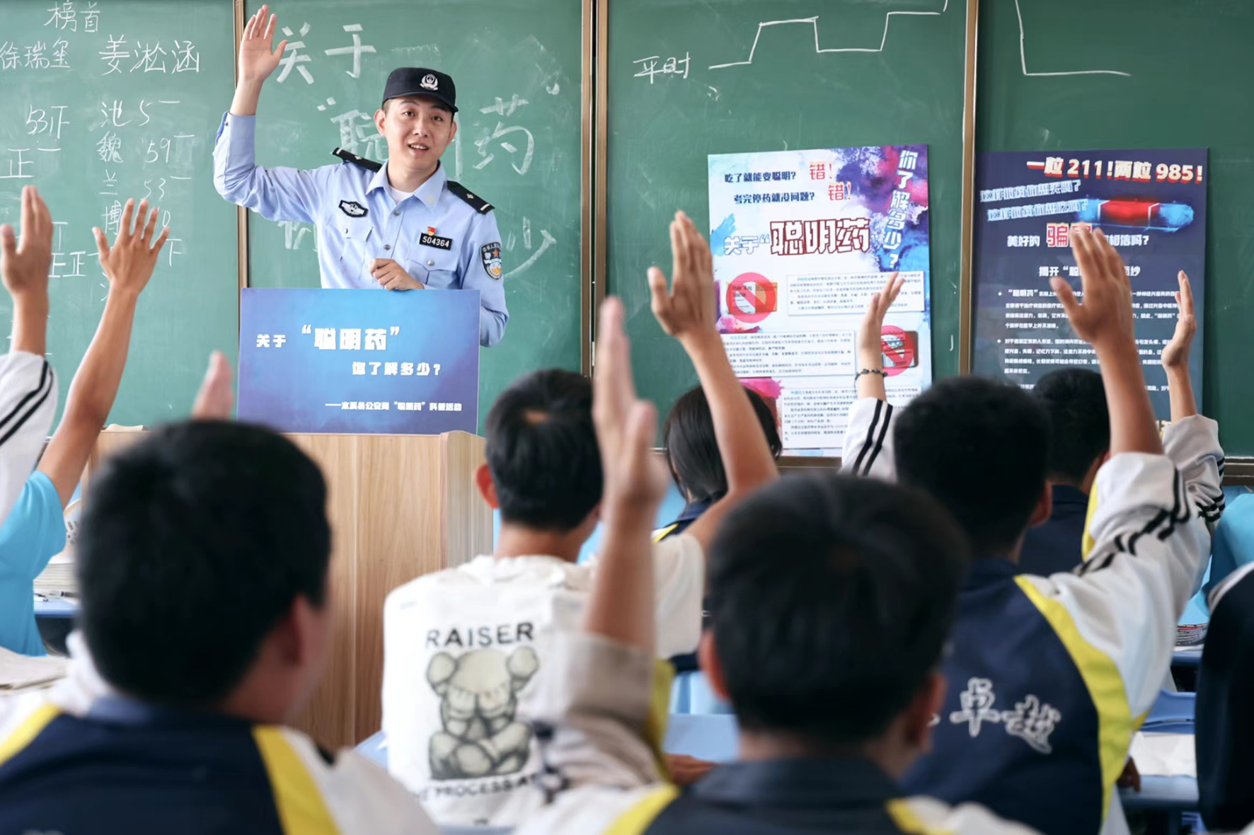 圖為民警走進教室向?qū)W生們講解“聰明藥”的危害。