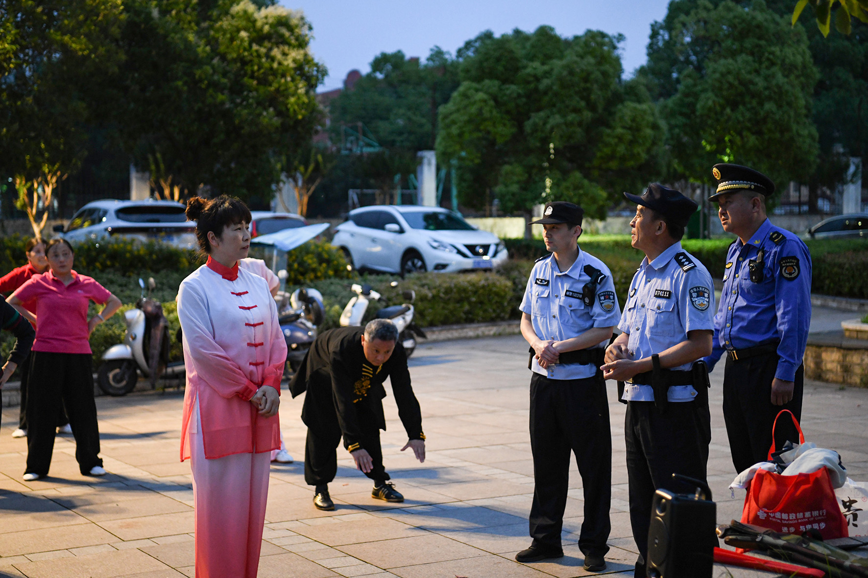 6月5日晚,安徽省馬鞍山市含山縣公安局民警向群眾宣講高考期間的“禁噪”要求。