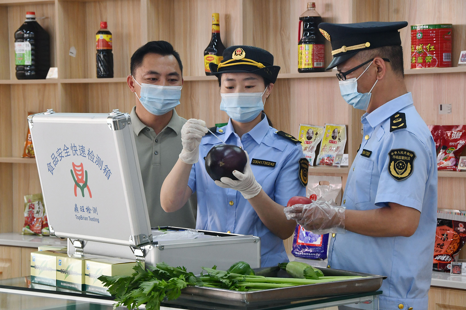 6月6日,河北省邯鄲市永年區(qū)市場監(jiān)督管理局執(zhí)法人員對永年二中高考考點食堂的菜品進行快速檢測。