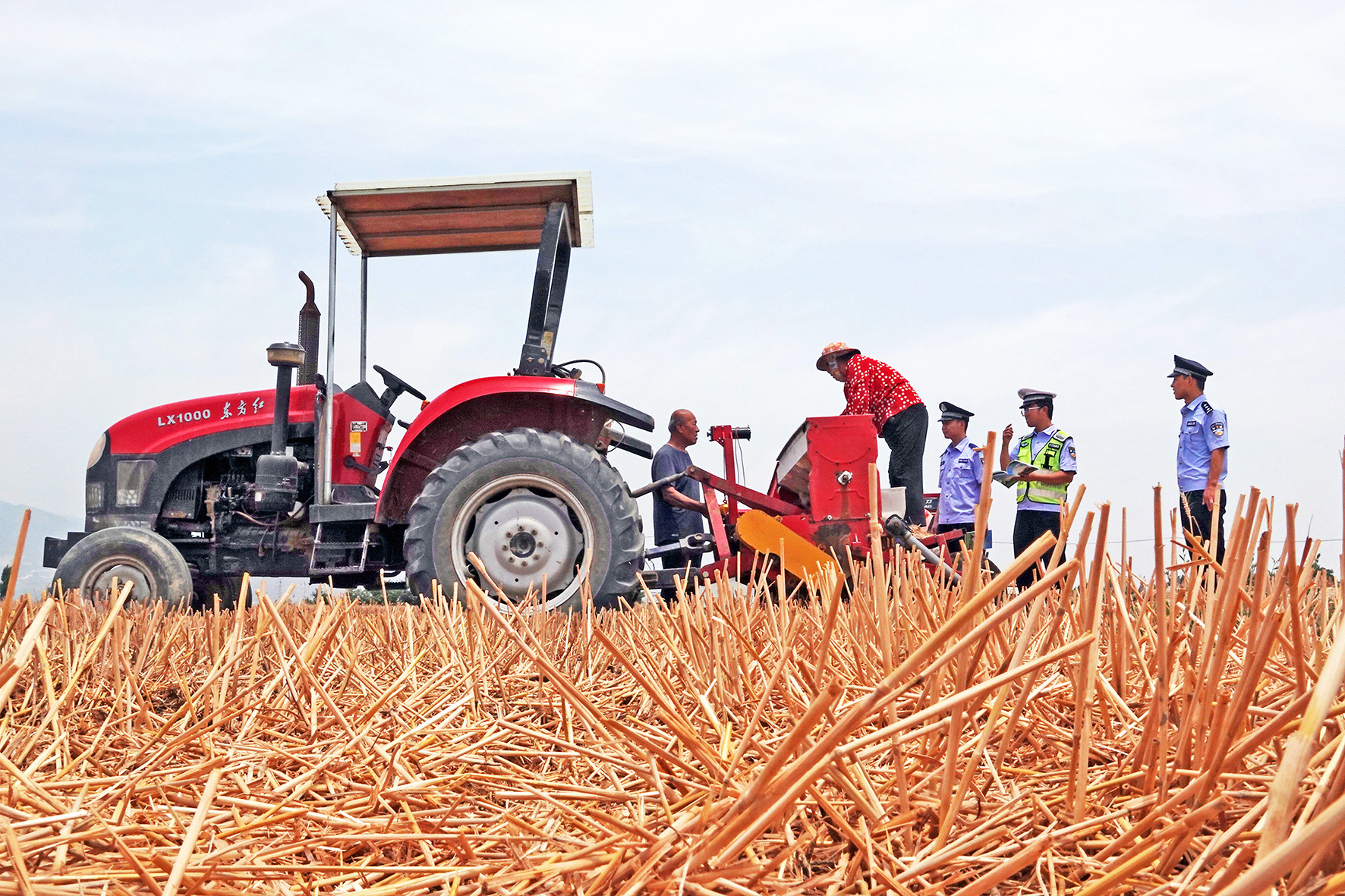 6月11日,山西省運(yùn)城市新絳縣公安局澤掌派出所聯(lián)動(dòng)交警部門(mén)在澤掌鎮(zhèn)澤掌村田間,為農(nóng)機(jī)手講解三夏安全駕駛注意事項(xiàng)。