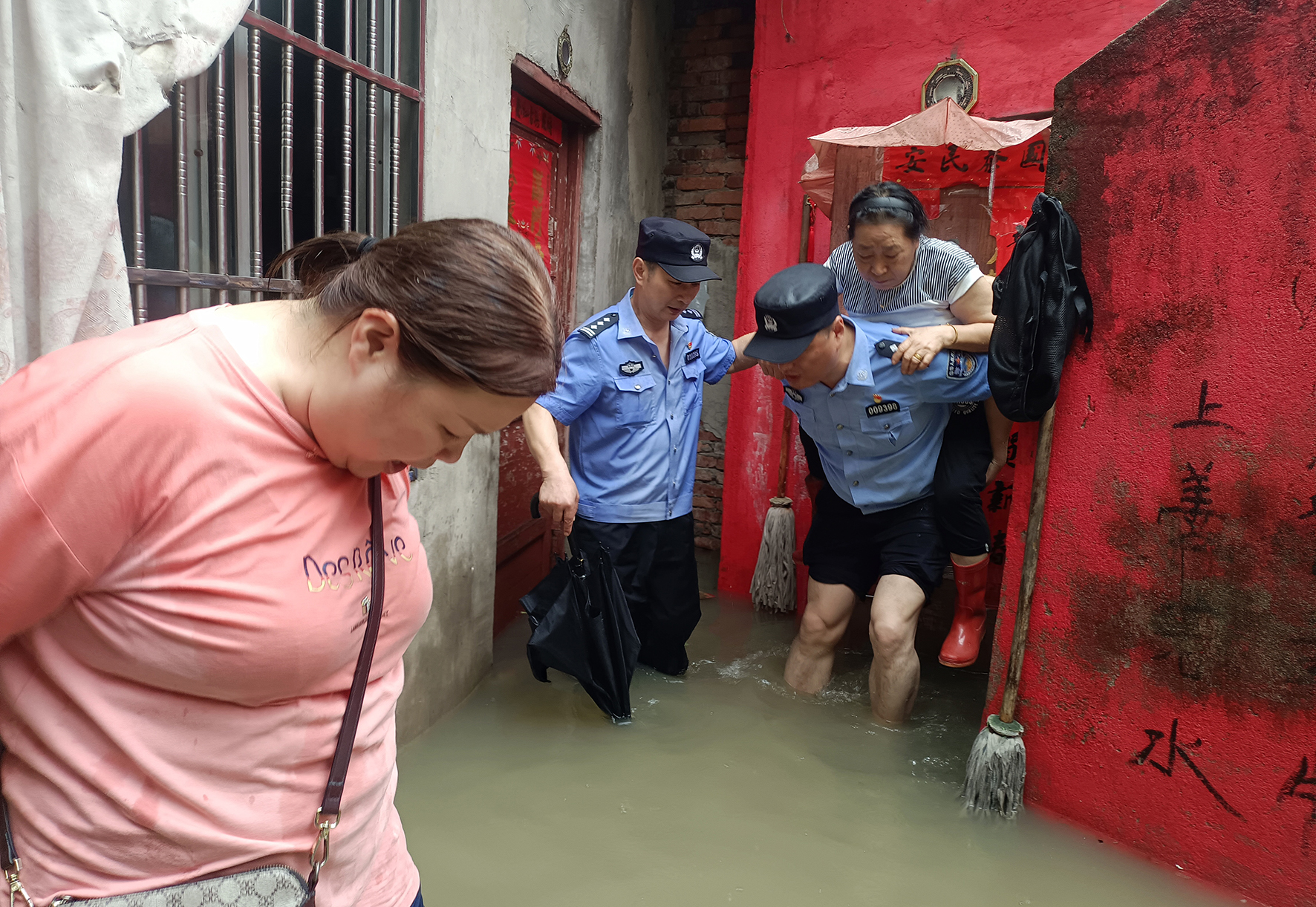 6月30日,安徽省蕪湖市暴雨傾盆。蕪湖市公安局鏡湖分局弋磯山派出所社區(qū)民警輔警聯(lián)合社區(qū)工作人員冒雨深入轄區(qū)花園社區(qū)內(nèi)澇區(qū)域開展巡查,幫助動(dòng)員居民撤離危險(xiǎn)區(qū)域。