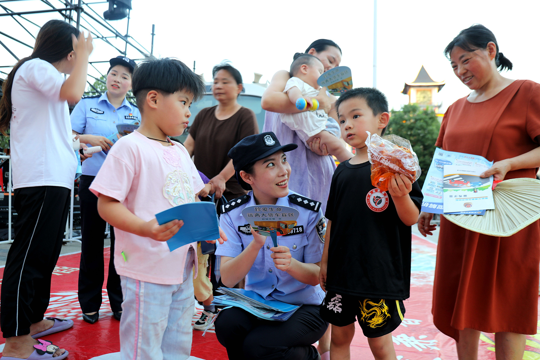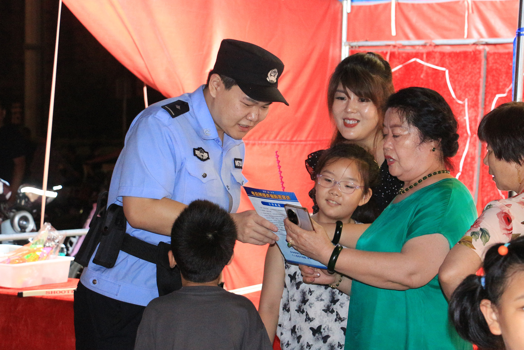 7月6日傍晚,安徽省舒城縣公安局組織刑偵、交警、派出所民警來到縣城區(qū)人員較為聚集的廣場(chǎng),向群眾開展安全防范宣傳。