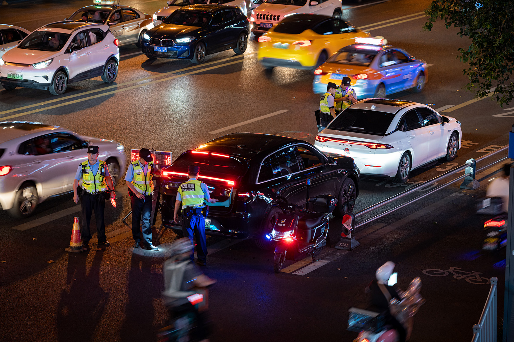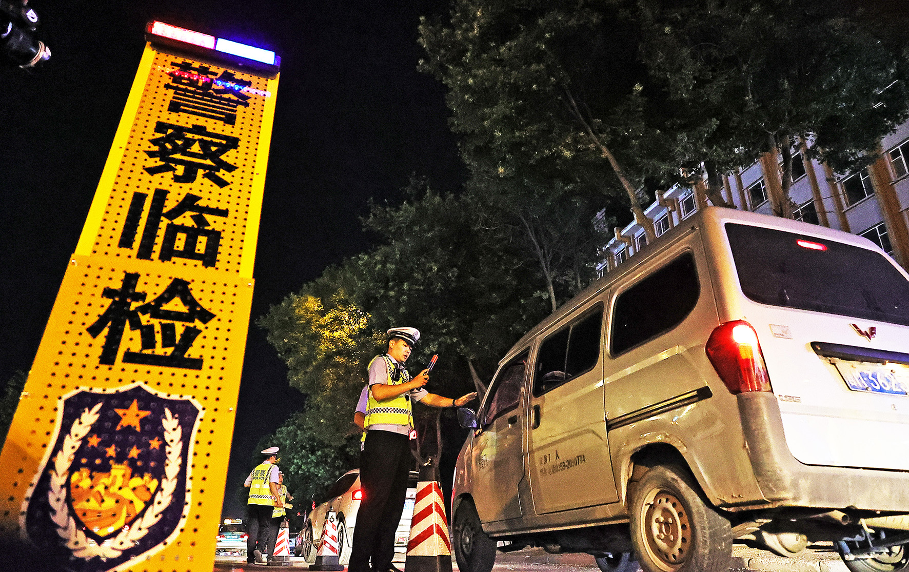 7月6日晚,山西省運(yùn)城市新絳縣公安局交警大隊(duì)民輔警在全國公安機(jī)關(guān)夏夜治安巡查宣防集中統(tǒng)一行動(dòng)中嚴(yán)查酒駕等嚴(yán)重交通違法行為。