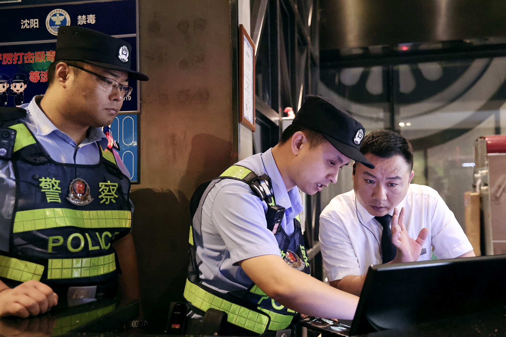 7月6日晚,遼寧省沈陽市公安局和平分局太原街派出所民警在酒店和娛樂場(chǎng)所進(jìn)行檢查。