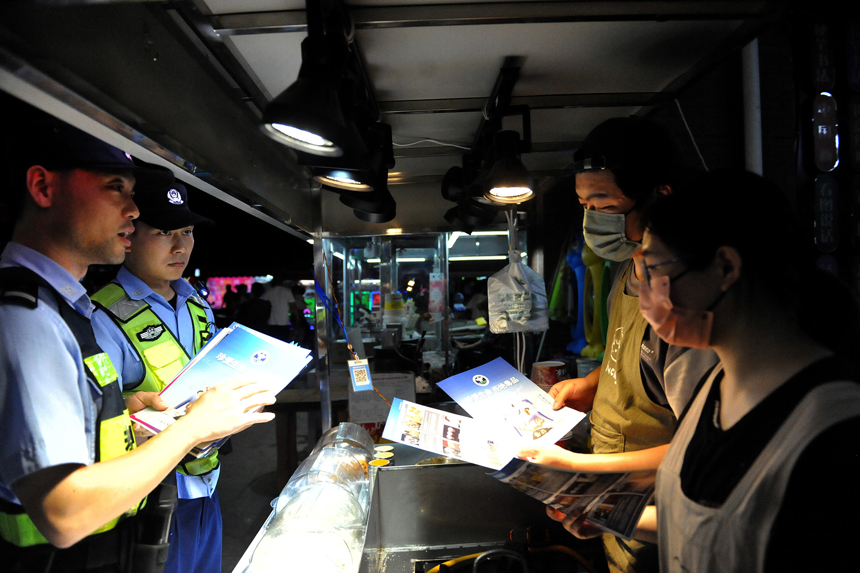 7月6日,山東省棗莊市公安局山亭分局組織開展夏夜治安巡查宣防第一次集中行動(dòng)。民輔警深入廣場(chǎng)、夜市和商業(yè)區(qū)等人員密集場(chǎng)所開展巡邏防控,面對(duì)面向群眾宣講防范盜搶騙、防溺水、拒酒駕、禁毒、禁賭等知識(shí),切實(shí)筑牢平安防線。