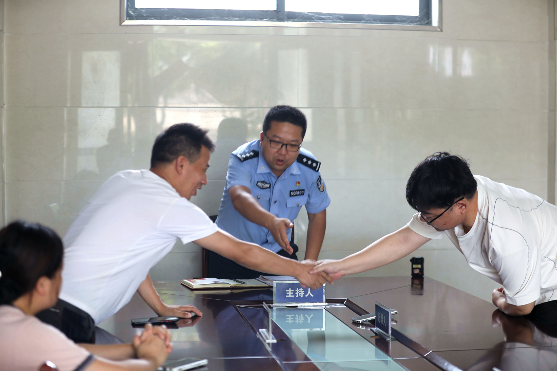 圖三:在民警努力下雙方當(dāng)事人達成協(xié)議握手言和。