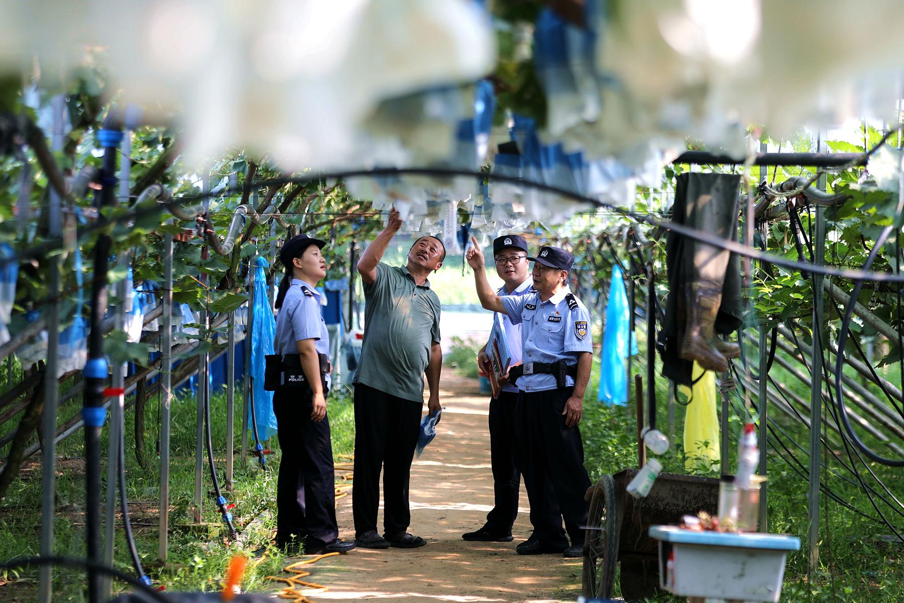 8月8日,安徽省舒城縣公安局五顯派出所民警走進(jìn)轄區(qū)一葡萄種植園,了解葡萄生長、周邊治安等情況,宣傳“夏季行動(dòng)”相關(guān)知識(shí),做好安全防范。