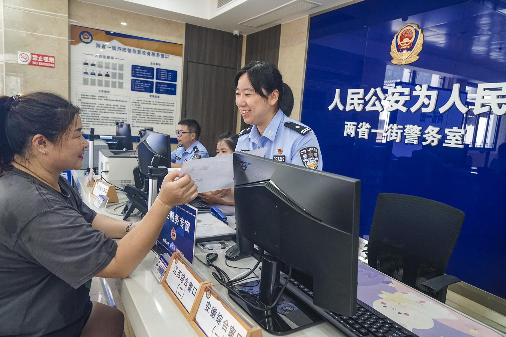 圖一:7月25日,皖蘇“兩省一街”警務(wù)室民警服務(wù)兩地群眾,真正實(shí)現(xiàn)“進(jìn)一扇門,辦兩省事”。