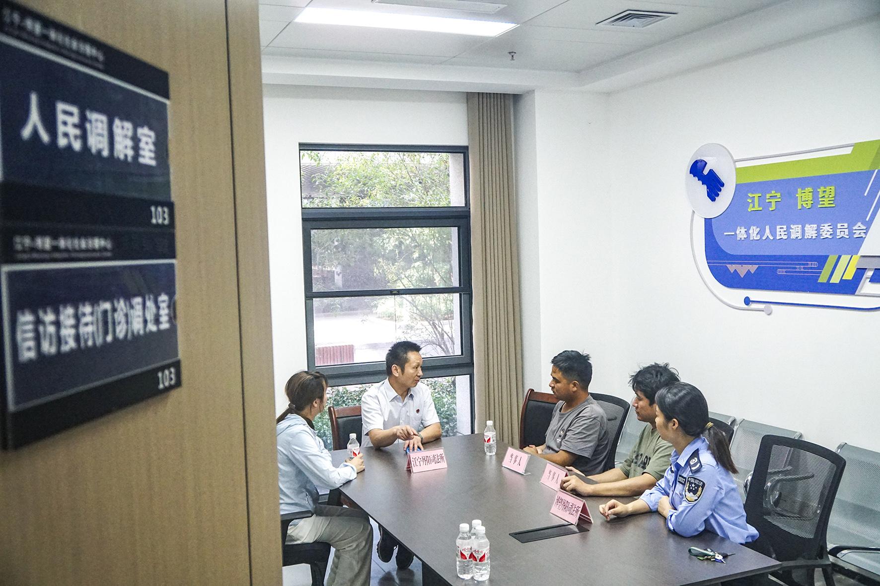 圖二:8月6日,江寧—博望跨界一體化聯(lián)合人民調(diào)解委員會(huì)專職調(diào)解員共同解決兩地群眾反映的訴求和矛盾糾紛。
