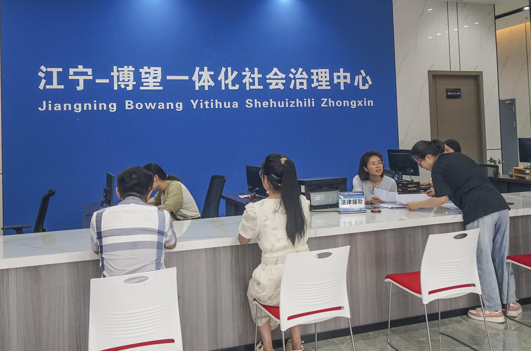 圖三:7月25日,江寧—博望一體化社會(huì)治理中心工作人員在接受群眾咨詢。