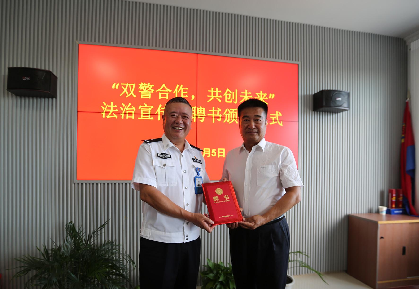 圖為監(jiān)獄負(fù)責(zé)人向法治宣傳員頒發(fā)聘書。