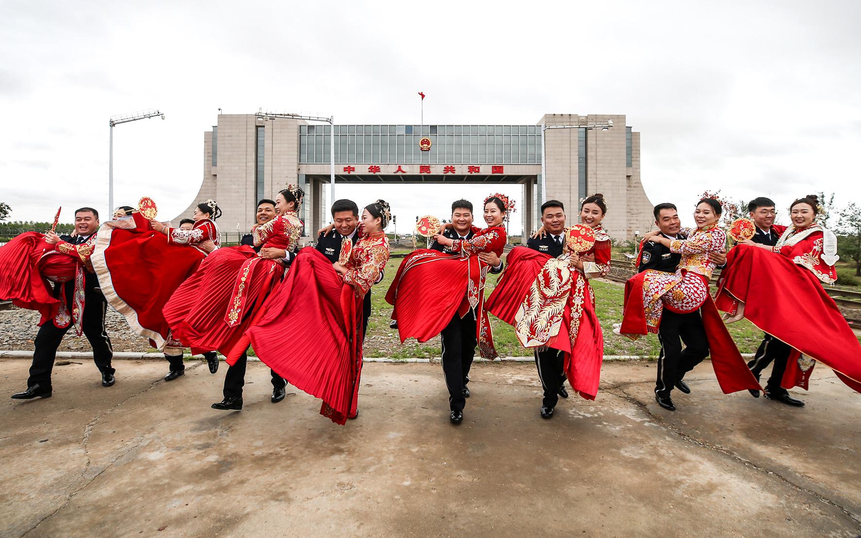 8月11日,駐守在祖國(guó)北大門的內(nèi)蒙古出入境邊防檢查總站二連出入境邊防檢查站,在巍峨壯觀的國(guó)門下為8對(duì)新人舉辦“邊守·邊愛(ài)”第五屆“愛(ài)在北疆 情定國(guó)門”集體婚禮,激發(fā)民警扎根邊疆、奉獻(xiàn)青春、建功立業(yè)的工作熱情。