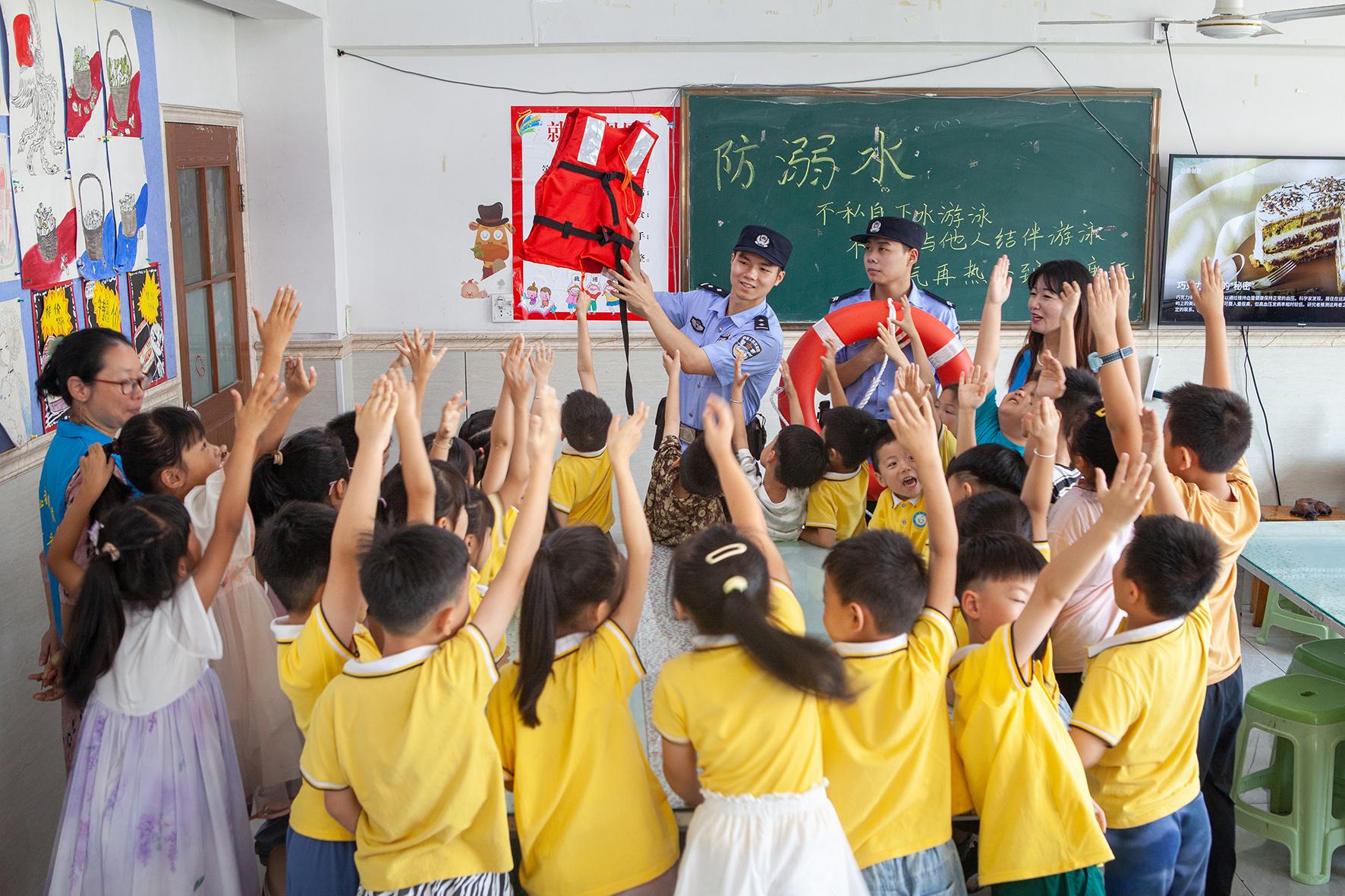 8月12日,浙江省臺州市公安局黃巖分局江口派出所民警來到轄區(qū)內的涵藝文創(chuàng)園,給參加暑期培訓的小朋友們開展防溺水宣傳,提升他們的防范意識。