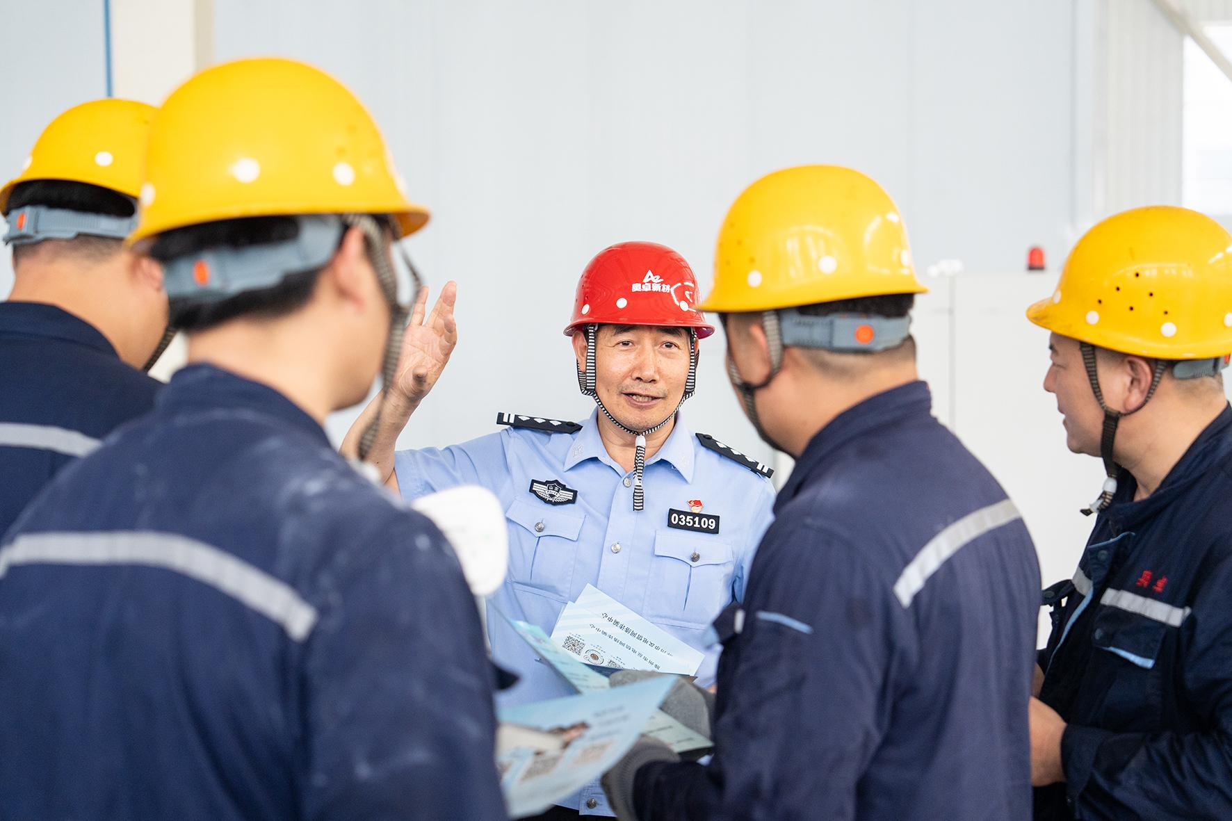 圖為8月13日,姜屯派出所“項(xiàng)目警長(zhǎng)”在轄區(qū)企業(yè)走訪,開(kāi)展安全防范宣傳。