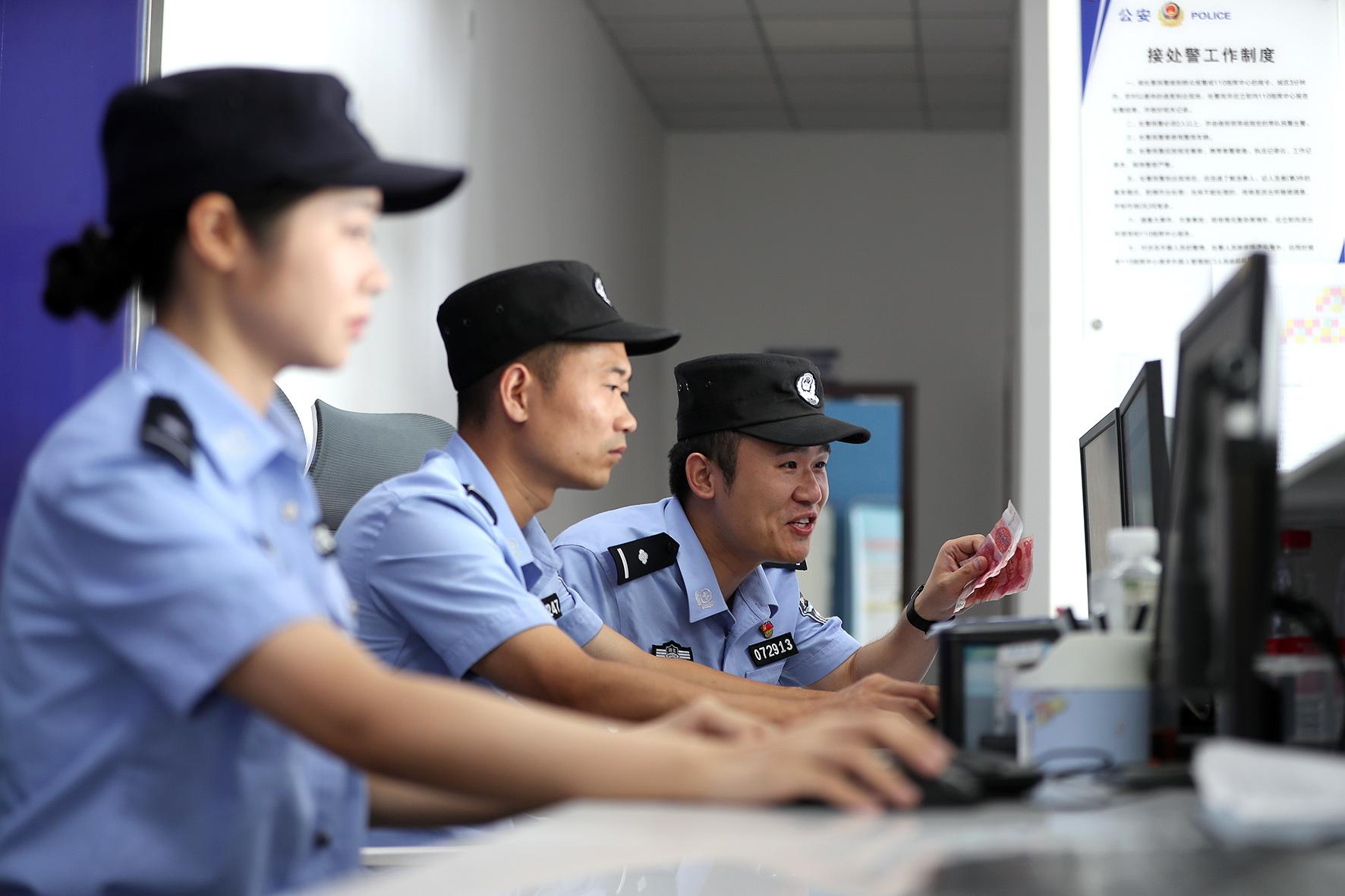 民警將謝婆婆攙扶進(jìn)派出所,第四次將錢還給老人。