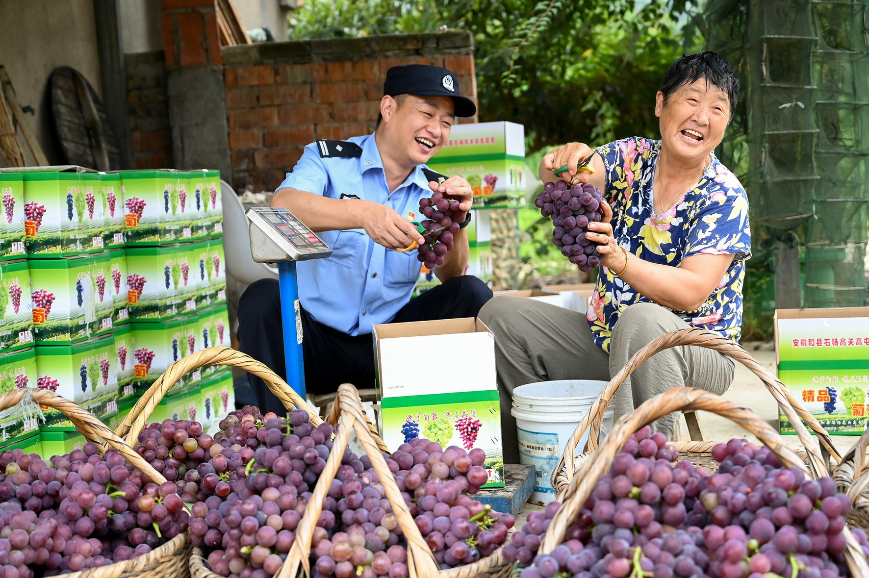 8月21日,安徽省馬鞍山市和縣公安局民警走訪種植葡萄的農(nóng)戶,了解葡萄園治安狀況。同時,向農(nóng)戶普及預(yù)防網(wǎng)絡(luò)詐騙、合同欺詐等法律知識,提升群眾法治意識。