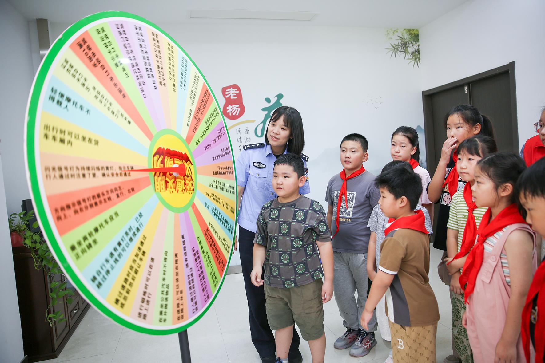 8月22日,江蘇省如皋市高新區(qū)交警中隊(duì)民警在城南街道平明社區(qū)向?qū)W生們開展交通安全宣傳。