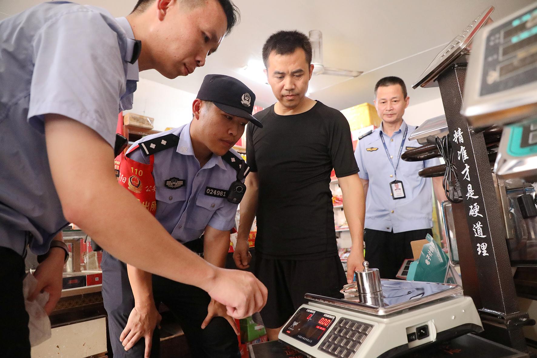 9月2日,江西省九江市公安局潯陽分局金雞坡派出所民警輔警聯(lián)合市場(chǎng)監(jiān)管部門工作人員深入轄區(qū)電子秤銷售門店及農(nóng)貿(mào)市場(chǎng)、超市、流動(dòng)攤點(diǎn)等,開展電子秤專項(xiàng)檢查行動(dòng)。