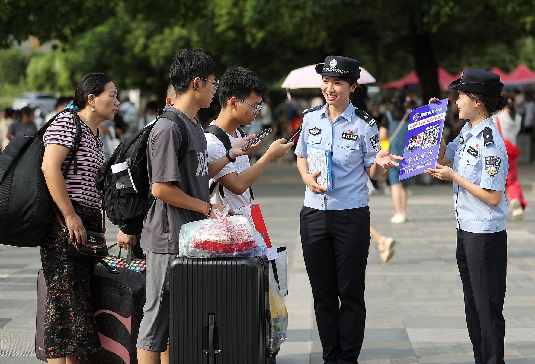 “你好,新同學(xué)!請(qǐng)掃碼下載國家反詐中心App……”9月6日,湖北省荊門市公安局東寶分局泉口派出所民警在荊楚理工學(xué)院新生報(bào)名點(diǎn),引導(dǎo)新生下載國家反詐中心App。
