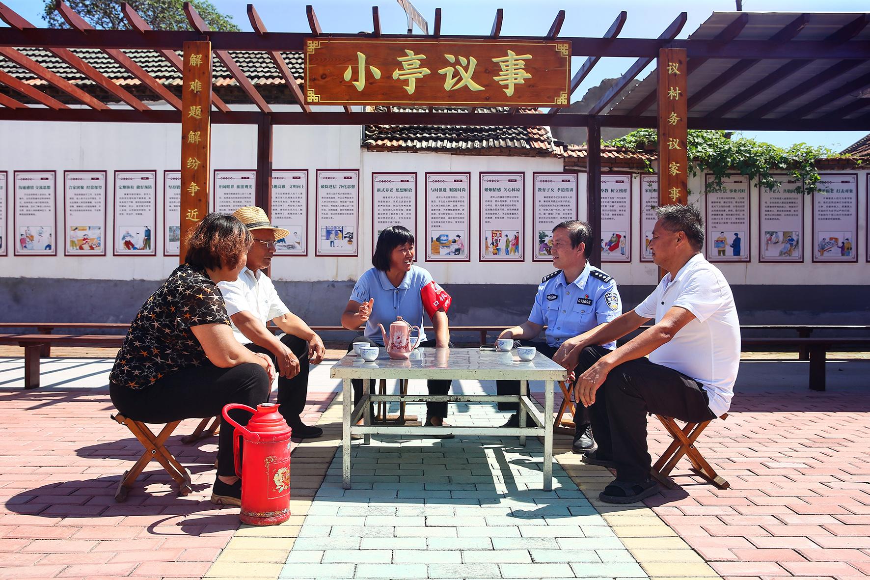 9月6日,山東省濟南市萊蕪區(qū)口鎮(zhèn)街道陶北村,“口鎮(zhèn)大媽”調(diào)解團成員在社區(qū)民警的配合下成功調(diào)解一起村民之間糾紛。