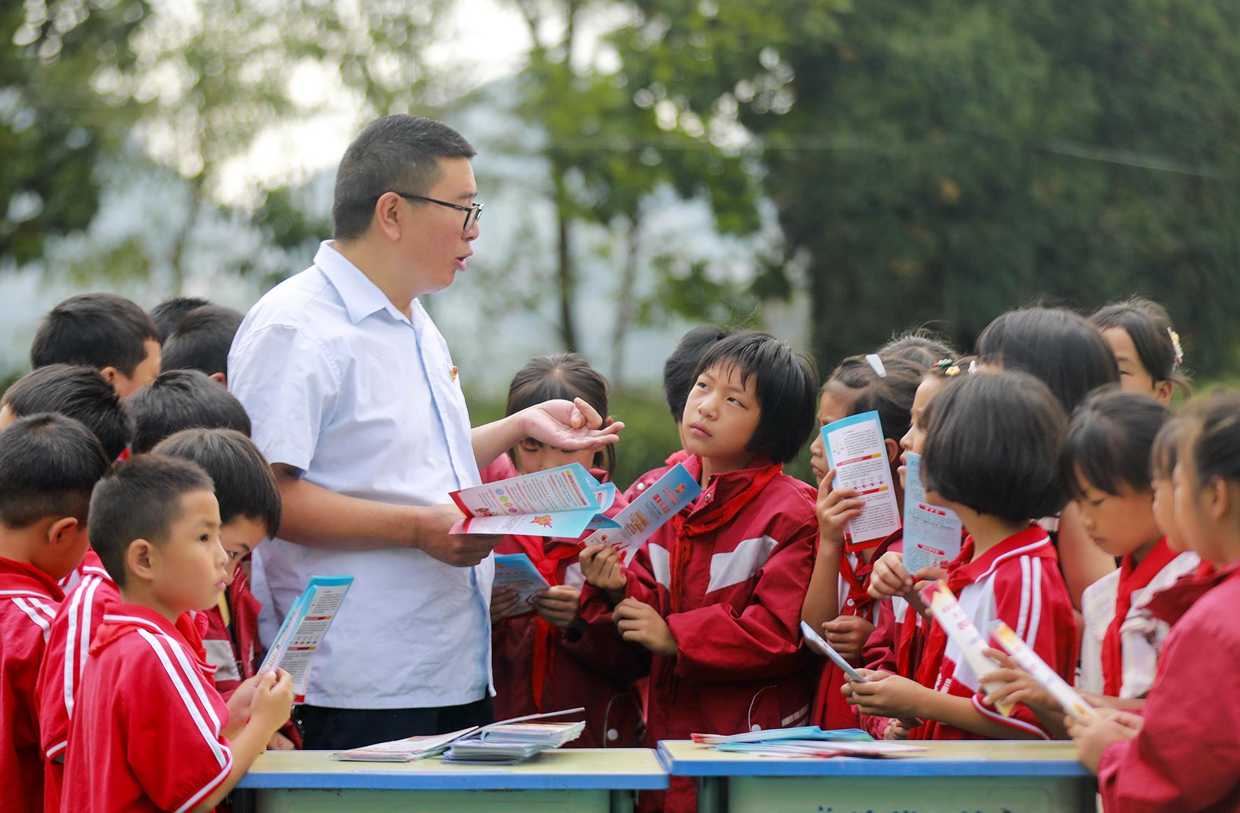 9月18日,貴州省黔西市司法局司法工作者在偏遠(yuǎn)的雨朵鎮(zhèn)龍場(chǎng)村龍場(chǎng)小學(xué),給孩子們講解防范網(wǎng)絡(luò)謠言、防校園欺凌、反詐、禁毒等知識(shí)。