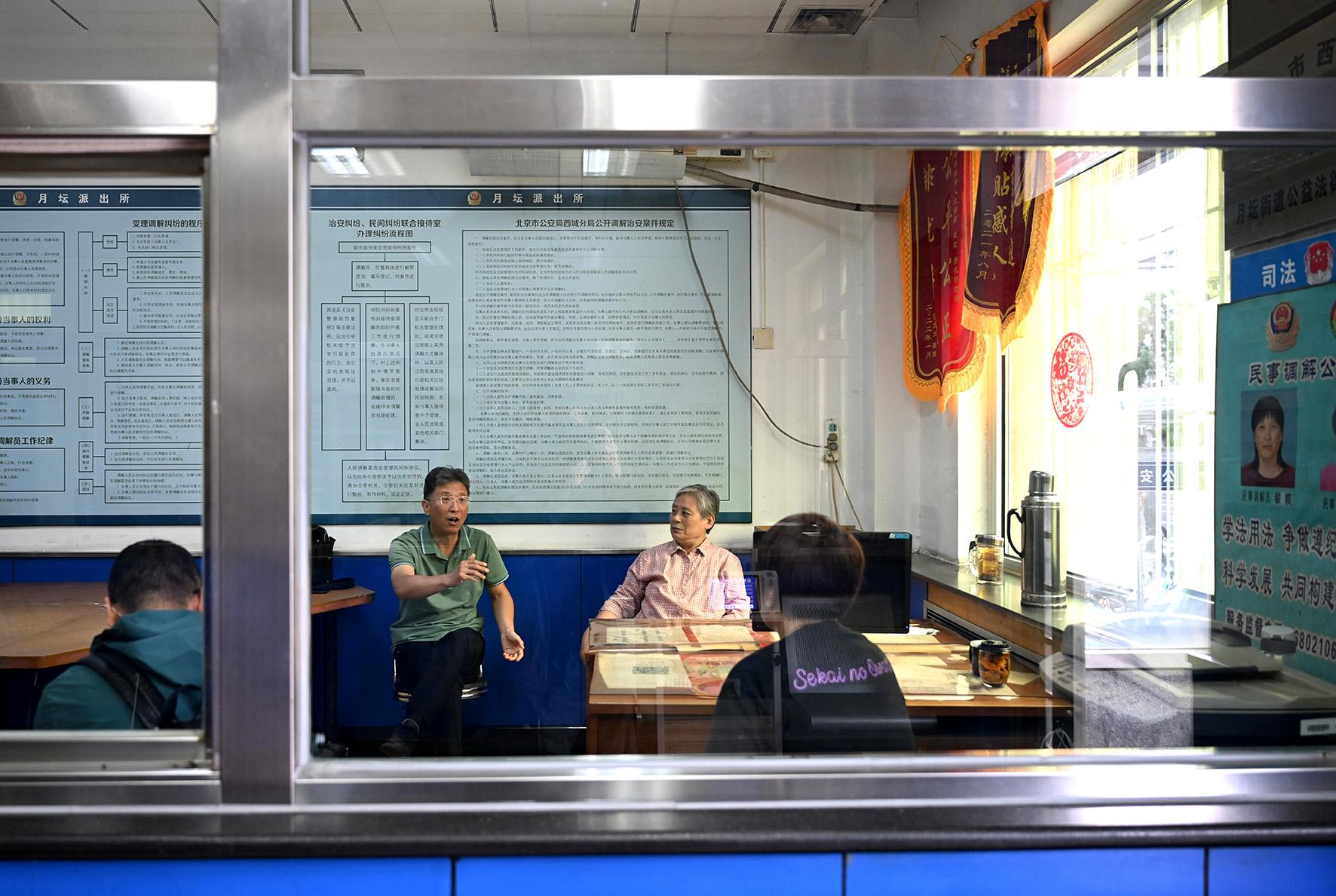 在月壇派出所調(diào)解室,法官趙海(中)圍繞人民調(diào)解協(xié)議中常見(jiàn)糾紛類型、遇到的共性問(wèn)題給兩位調(diào)解員進(jìn)行專業(yè)指導(dǎo)。