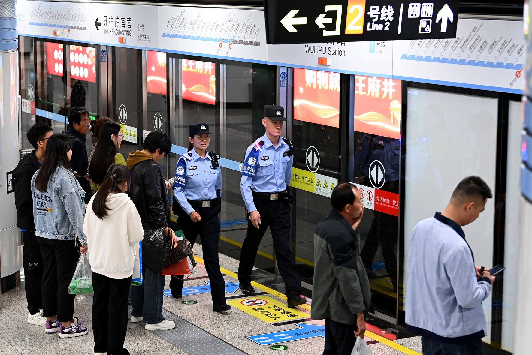 9月20日,甘肅省蘭州市公安局交通治安分局雁園路軌道治安派出所民警正在五里鋪地鐵站巡邏。雁園路軌道治安派出所以“主動(dòng)創(chuàng)穩(wěn)、靠前服務(wù)”的工作理念,不斷加強(qiáng)軌道交通重要站點(diǎn)、重要時(shí)段、重點(diǎn)部位巡邏防控力度,護(hù)航群眾平安出行。