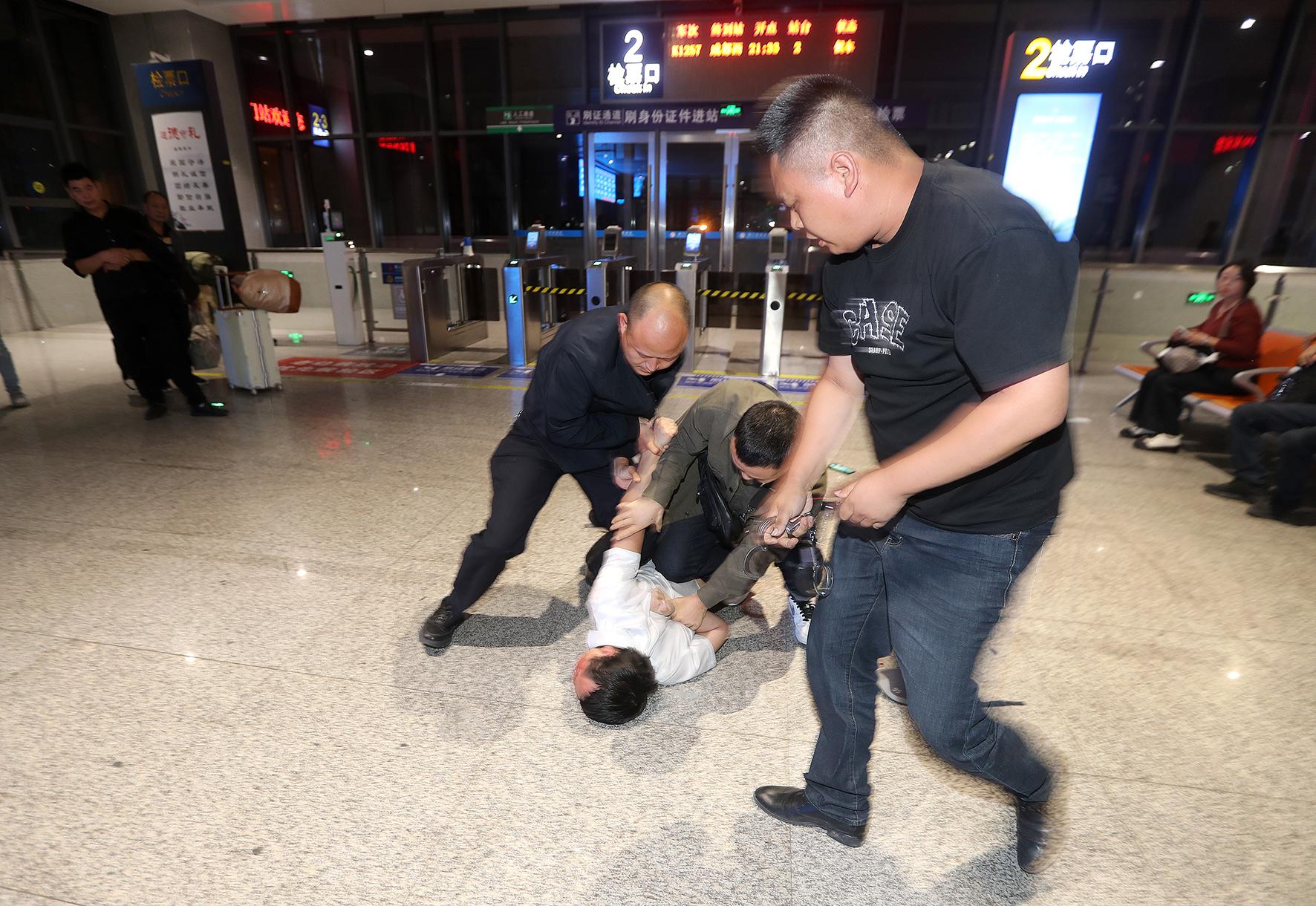 晚8點40分,蹲守的便衣民警在火車站候車室檢票口將盜竊嫌疑人抓獲。