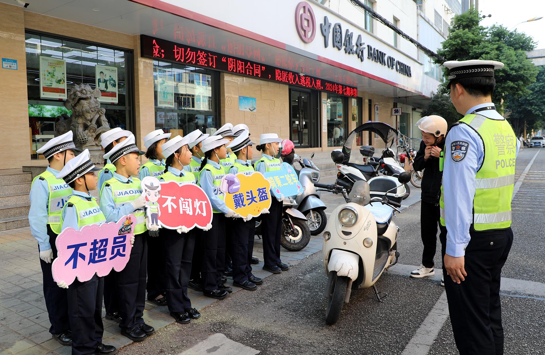 圖為“小交警”們在學(xué)校周邊路口勸糾交通違法。