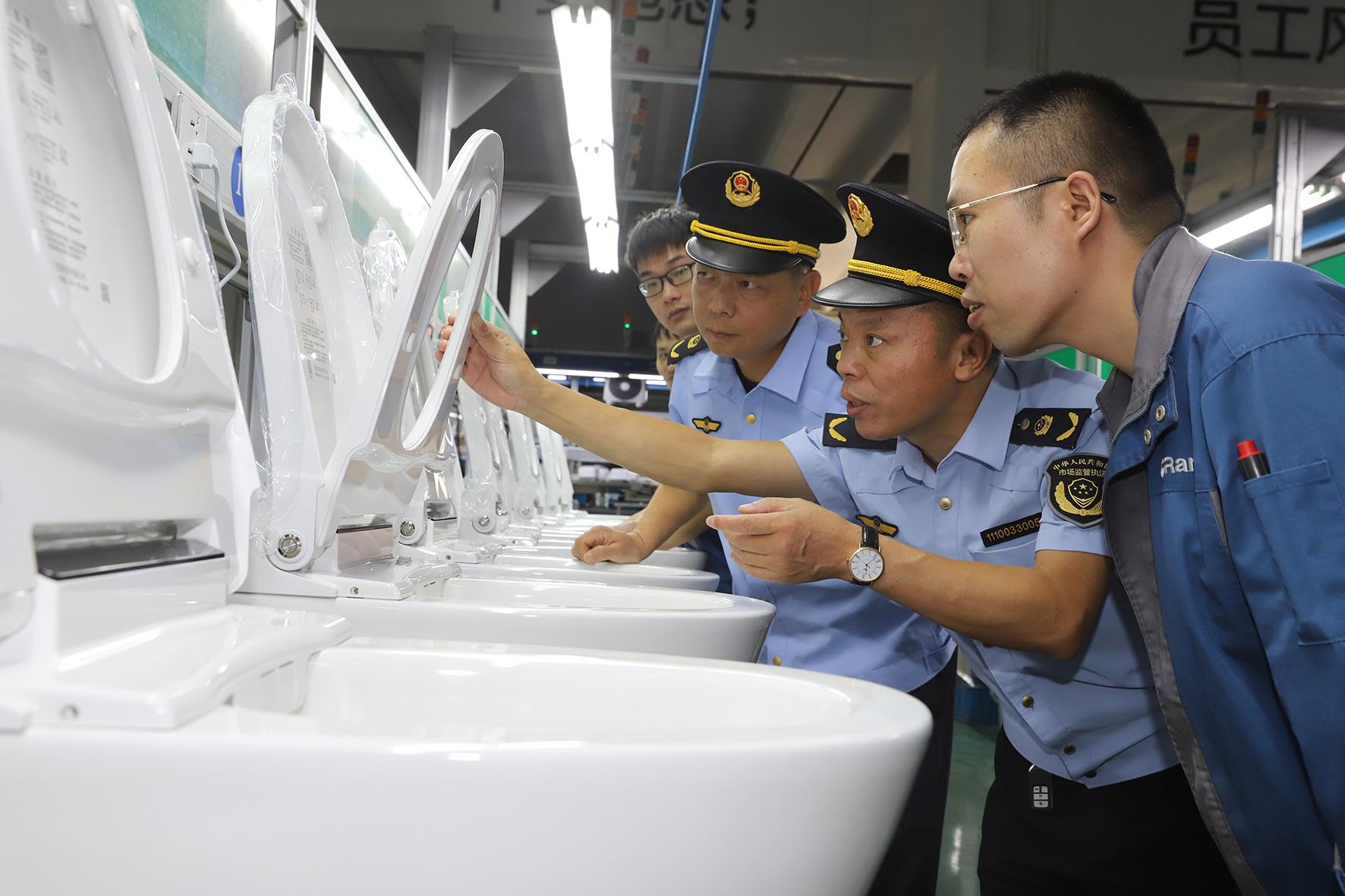 10月23日,浙江省臺州市路橋區(qū)橫街鎮(zhèn)市場監(jiān)督管理所執(zhí)法人員在轄區(qū)一家衛(wèi)浴企業(yè)走訪,并監(jiān)督企業(yè)嚴把產品質量關。