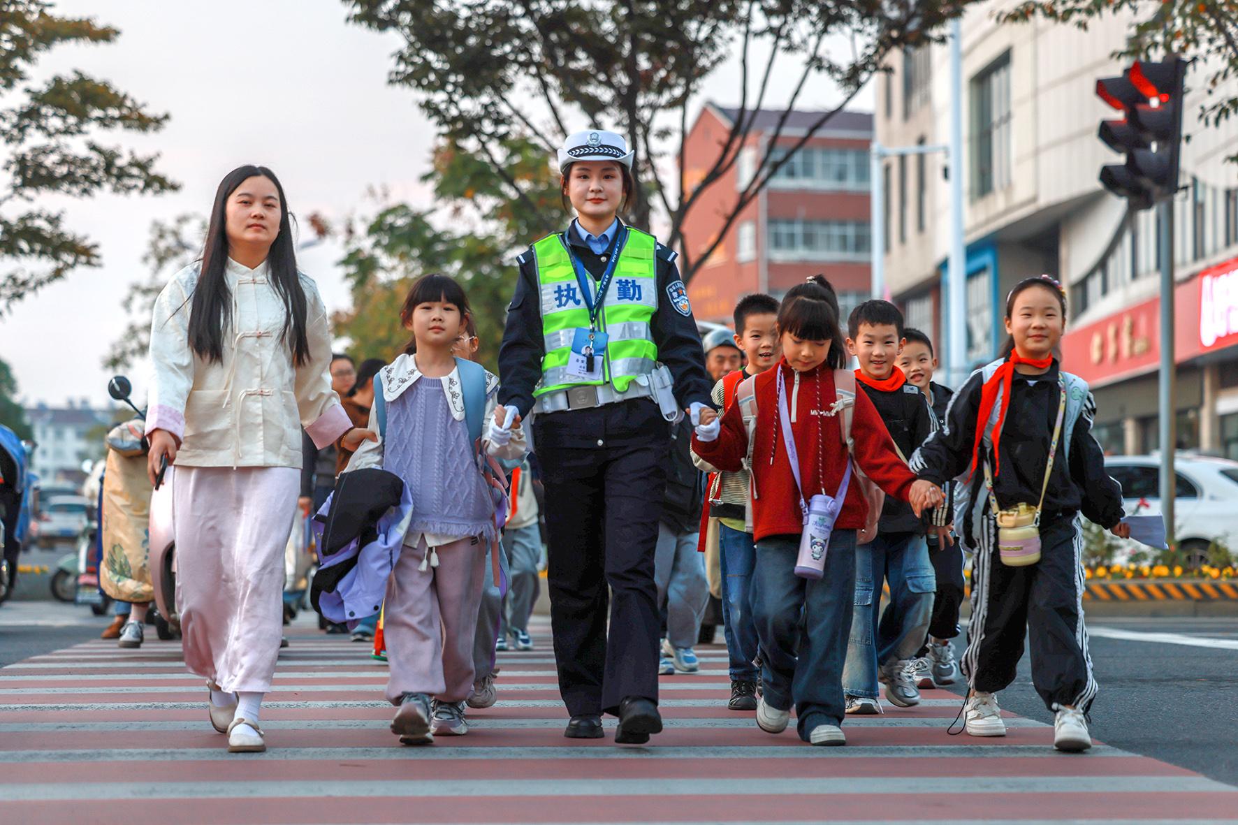10月29日,安徽省廣德市公安局交警大隊民警在第四小學周邊開展護學工作。