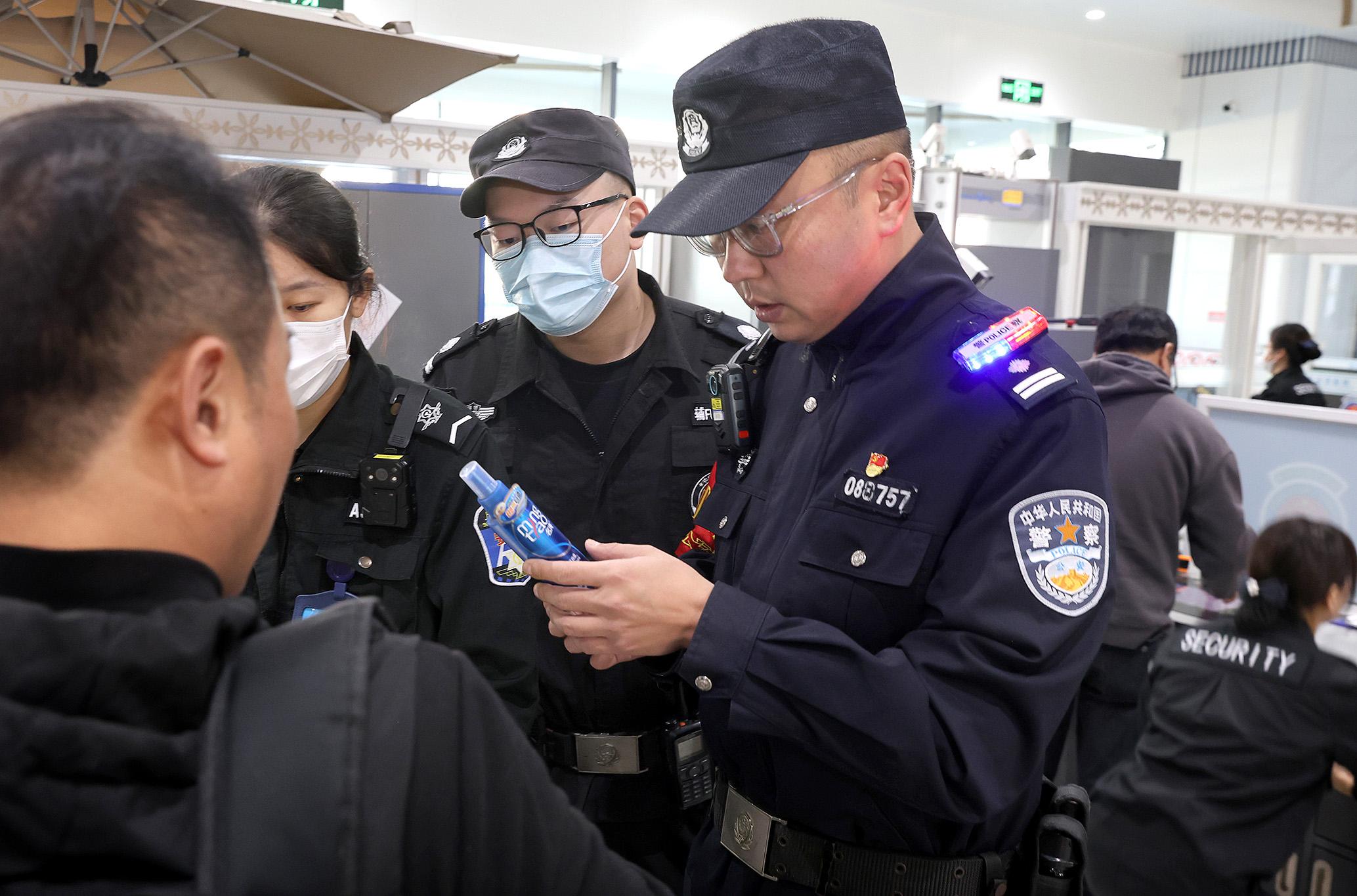 11月5日,南京鐵路公安處南通西站派出所民警在南通西站候車室治安檢查站檢查。為迎接第七屆中國國際進口博覽會,南通西站派出所啟動南通西站治安檢查站,全面強化站區(qū)重點時段、重點部位的巡邏防控,切實筑牢入“滬”屏障。